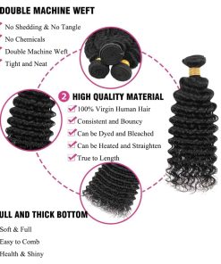 2. Calidad de Paquete de Cabello Humano Ondulado Profundo: Doble Trama de Máquina, Trama Apretada y Ordenada, Libre de Enredos y Caídas, Puntas Gruesas y Sanas, Elasticidad y Voluminoso, Sin olor, Suave y Completo, Cabello Humano Ondulado Suave y Sedoso.pueden ser alisados, rizados y estilizados como su propio cabello.