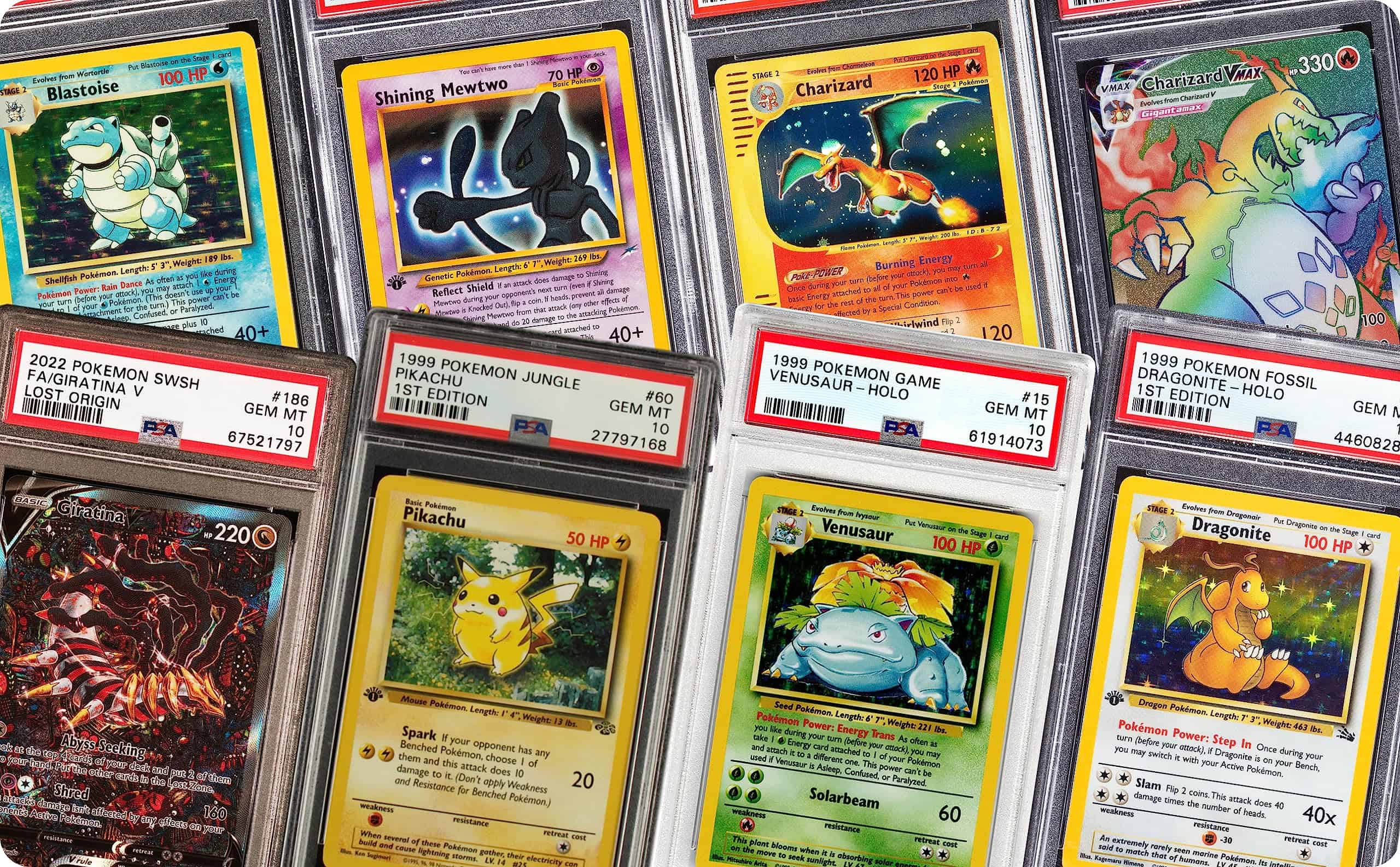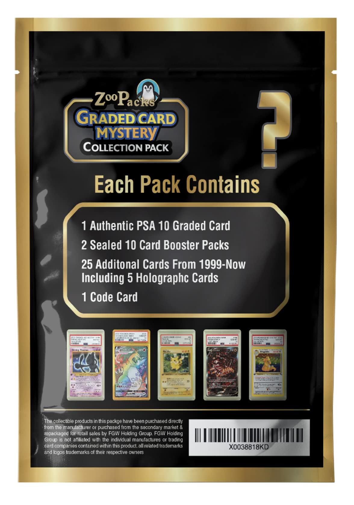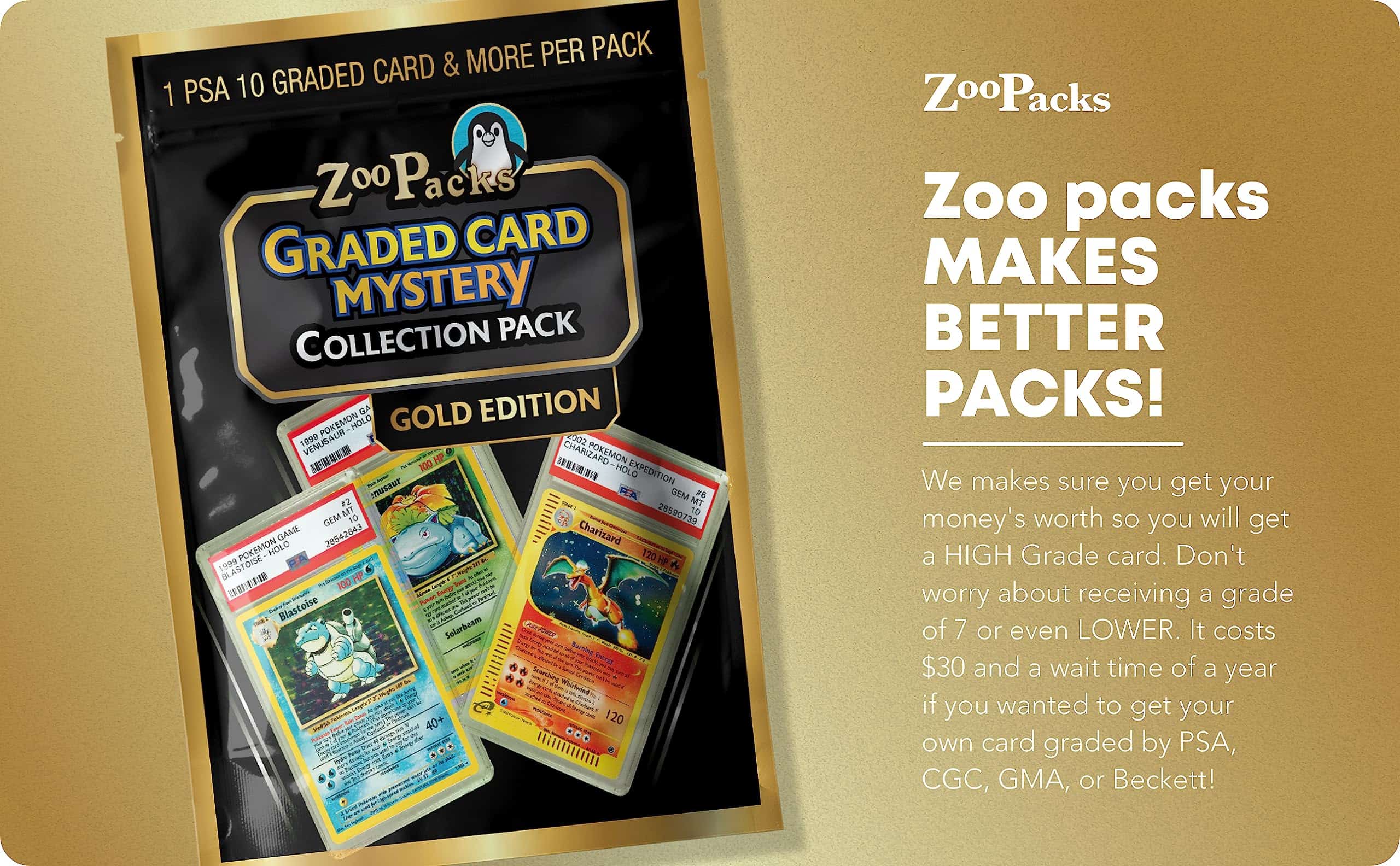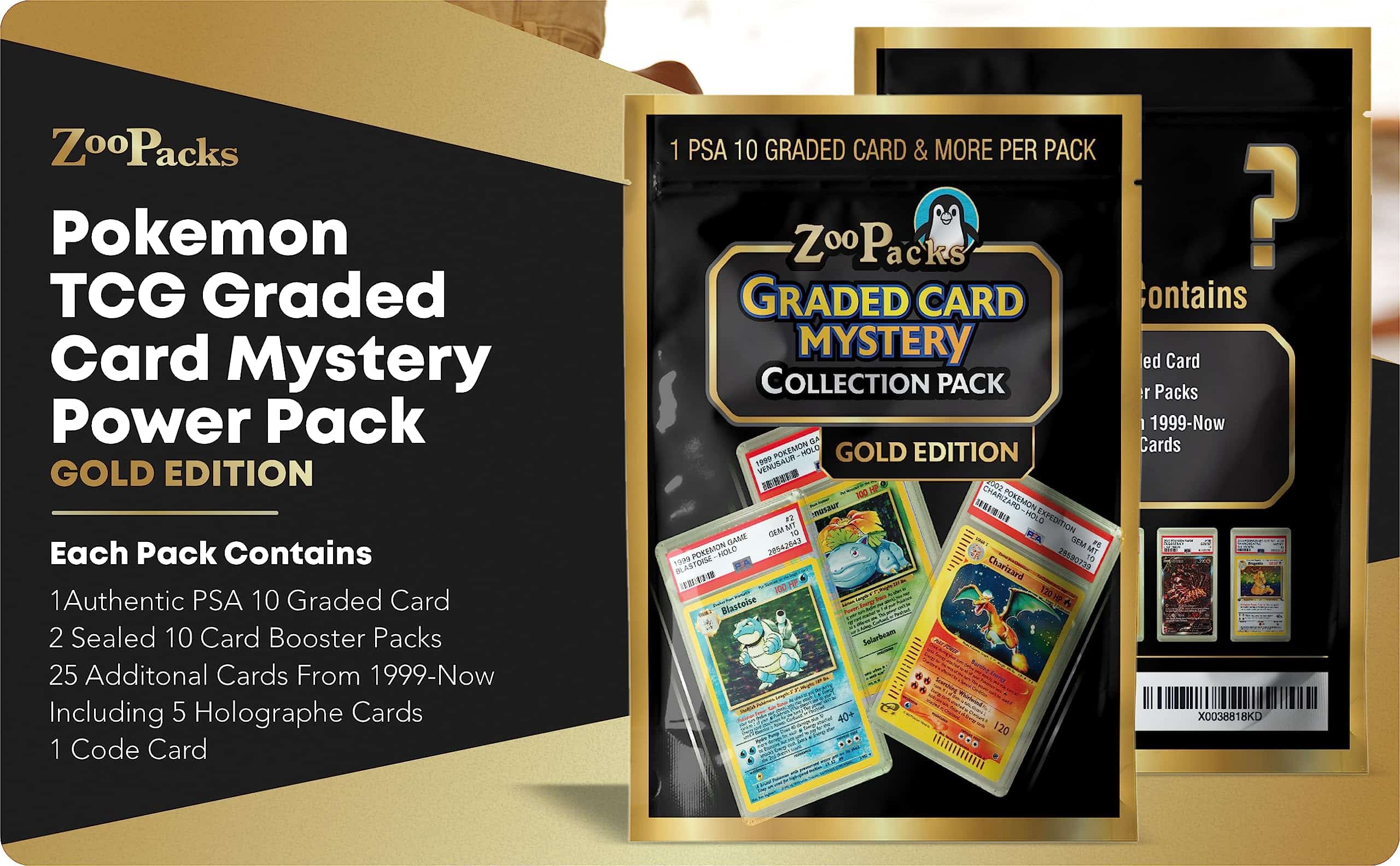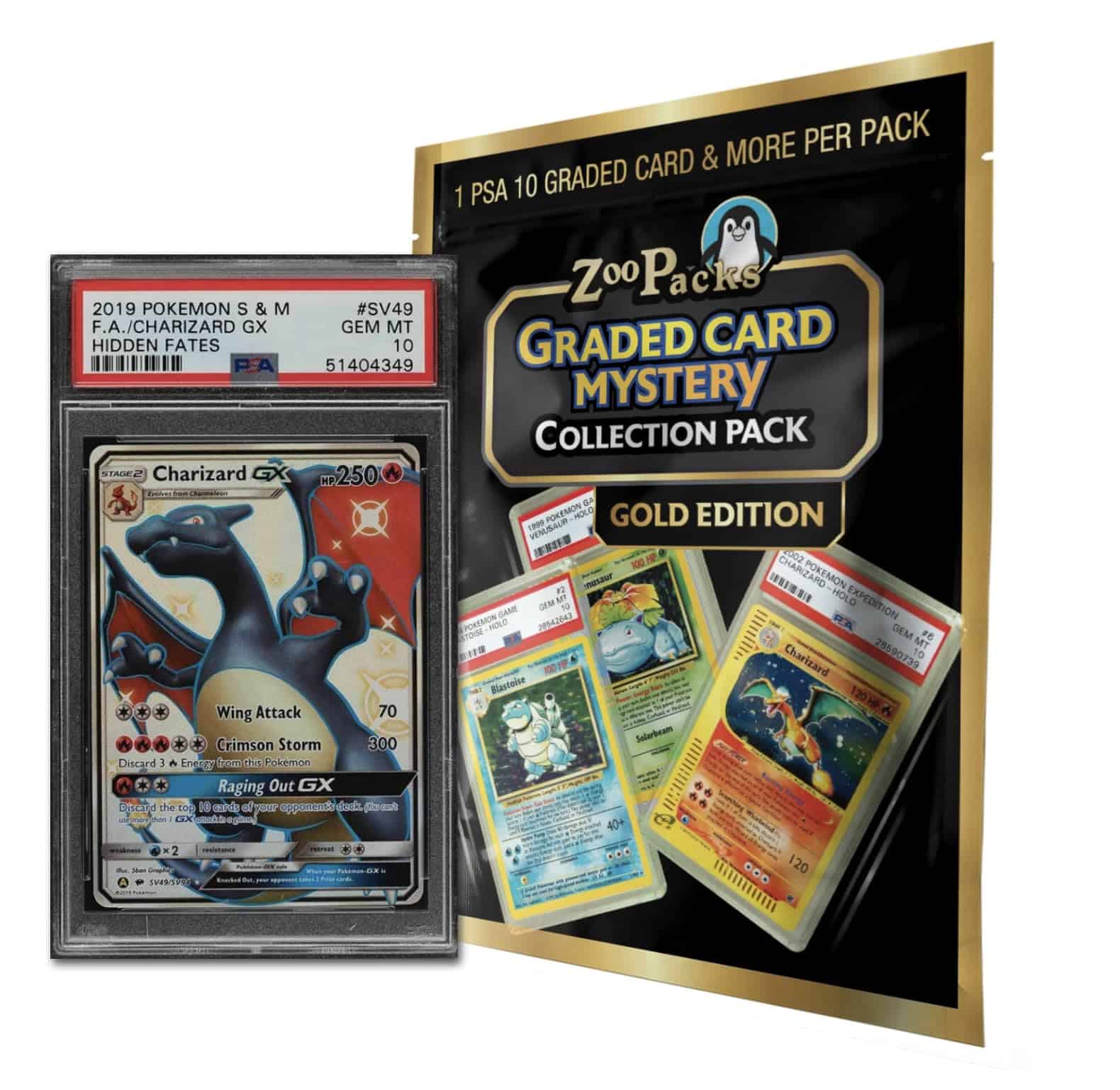 Cada paquete contiene 1 carta de Pokemon calificada PSA 10 + 40 cartas adicionales, incluyendo 2 de Primera Edición + 2 paquetes de refuerzo sellados + 1 moneda + 1 carta de código. ¡Los paquetes de Poder Misterioso de Pokemon garantizan que obtendrás el valor de tu dinero con una carta de alta calificación! No te preocupes por recibir una calificación de 7 o incluso menos. ¡Cuesta $30 y un tiempo de espera de un año si quisieras calificar tu propia carta con PSA, CGC, GMA o Beckett! ¿Quieres saber qué carta de Pokemon calificada podrías tener dentro de tu paquete? ¡Por supuesto que sí y no te decepcionarás, ya que estos paquetes de Poder Misterioso de Pokemon calificados tienen muchas Charizard, Pikachu, Gyarados, Blastoise y Venusaur para añadir a tu colección!
