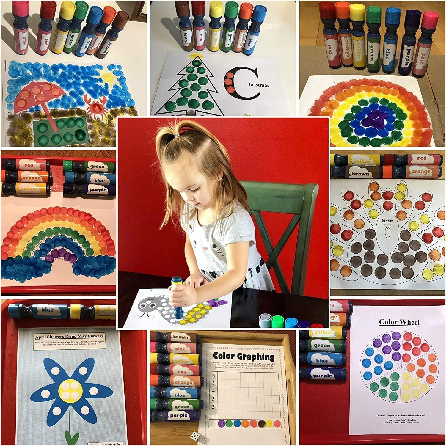 3. Fácil de Mostrar, USAR y ALMACENAR: La caja facilita a los maestros y educadores desde la configuración hasta la limpieza. Nuestros Marcadores de Dab y Punto tienen una tapa fácil de quitar y un agarre sencillo para los artistas más pequeños. La punta reforzada no se secará y está diseñada para resistir golpecitos, puntos y garabatos – ¡perfecta para deditos y GRANDES imaginaciones!.