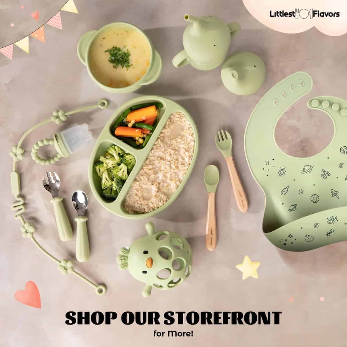 1. Solución todo en uno para la hora de comer. Nuestro juego de alimentación para bebés de silicona incluye todo lo necesario para la etapa de la comida de su bebé, lo que lo hace excepcionalmente completo. Este juego de alimentación es fácil de limpiar, duradero y libre de BPA.