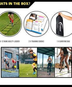 1. El Paquete de Entrenamiento de Escalera de Agilidad de Trained es ideal para mejorar la velocidad, agilidad, habilidad y explosividad en todos los deportes. Ya sea que estés entrenando para fútbol, baloncesto, béisbol, fútbol americano, atletismo, tenis, rugby u otro deporte competitivo, esta escalera de velocidad y agility con conos te ayudará a alcanzar tus objetivos de fitness más rápido.