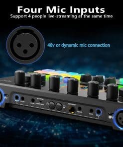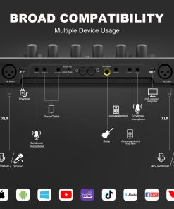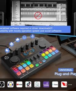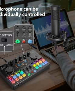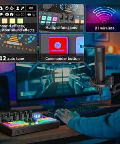 Este paquete de equipo para podcast de 2 personas viene con dos micrófonos condensadores de 3,5 mm, cada micrófono puede ser controlado de forma individual, ofreciendo una grabación de audio nítida y clara. Plug and play, no se requiere descargas de controladores ni software complicado, simplemente conéctelo a su computadora o teléfono inteligente y podrá comenzar fácilmente un podcast en cualquier momento y lugar. Compatible con Windows, iOS, Android y la mayoría de las aplicaciones sociales como TikTok y YouTube. Los aspectos destacados de este paquete para podcast incluyen un mezclador de audio con 4 entradas de micrófono, la entrada de micrófono XLR admite micrófonos condensadores y dinámicos de 48v, admite transmisiones en vivo de 4 personas simultáneamente y 4 modos de luz RGB para crear un espectáculo de luces en sus transmisiones en casa, estableciendo una nueva tendencia en podcasting. El botón de comandos en rojo guardará la configuración deseada, implementa botones de música, monitor, reverb, salida, MIC L, MIC R, INST y modo de sonido, todas las configuraciones se memorizarán, lo que le ayudará a configurar y guardar rápidamente el estado de los botones y las funciones durante las transmisiones en vivo, controla fácilmente tu música en caso de emergencia. Este paquete de equipo para podcast cuenta con 8 efectos de sonido personalizados, donde puede grabar su audio favorito para la grabación de podcasts a través de un teléfono inteligente, computadora, micrófono o dispositivo Bluetooth, cada botón puede durar unos 20 segundos y cuenta con 4 cambios de voz, donde puede cambiar su voz a masculina/femenina/bebé/robot, con un total de 15 efectos de sonido para un entretenimiento mejorado. La función Bluetooth inalámbrica proporciona música de acompañamiento. Equipado con un auto-ajuste de 12 pasos muy útil para aquellos que les gusta la creación musical, 8 controles de ajuste (Tre,mid,bass,pitch,reverb) monitorización en tiempo real, silenciado con un clic, control independiente del volumen del micrófono, pantalla de visualización en el tablero, entrada de acompañamiento, buen efecto de reducción de ruido después de presionar el botón DNR. Este mezclador DJ también incluye 6 funciones esenciales, como Solo de música, Loop back, Side Chain, etc., ideal para grabación de podcasts, transmisiones, doblaje y creación de contenido. Lista de paquetes: 1 x mezclador de audio, 2 x micrófono condensador, 2 x brazo de micrófono, 2 x auricular de 3.5mm, 2 x montura a prueba de golpes de micrófono, 2 x espuma de cubierta de micrófono, 2 x cable XLR, 2 x cable de audio de 3,5 mm, 1 x cable de carga USB, 1 x cable dual de tipo C, 6 x gancho y anillo, 1 x manual de usuario