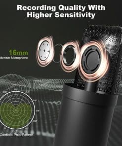 2. Paquete de equipos de podcast para 2: El kit de podcast viene con 2 micrófonos de condensador que te permiten comenzar a transmitir en vivo, grabar, hacer DJ fácilmente en poco tiempo. La captación cardiode del micrófono proporciona una increíble flexibilidad. Los brazos de micrófono de metal de alta calidad y los soportes de amortiguación aíslan el ruido del micrófono, el golpe y la vibración ambiente. Además, el canal de monitor independiente puede lograr monitoreo en tiempo real, un canal de micrófono controla ambos micrófonos.