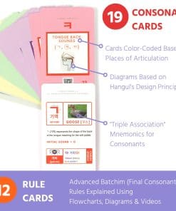 Ever wondered how to learn Korean effectively Start with Hangul interactive cards. Each Hangul card contains a QR code with a video lesson, stroke order, romanization and mnemonics, and color-coded sentence examples to help you visually learn the Korean alphabet. Start your language learning adventure with our travel expressions flashcards. This meticulously crafted deck covers over 150 useful expressions, supported by an extensive collection of 150+ quick video lessons. Learning a new language can be challenging, but these flash cards provide a structured and efficient way to start. Get Korean Workbook & More: You will also receive a top-rated «Korean Alphabet Made Easy» e-book, another set of digital flashcards with 300+ Korean vocabulary words, digital Hangul worksheets, and basic grammar & sentence structure study guides that come with video lessons. Korean Gift Idea: A thoughtful and educational gift for K-pop and K-drama lovers, these Korean flashcards come in a rigid box and are made in Korea with 100% waterproof materials for outstanding durability, making them great for travelling! Korean Gifts for Kids: Our Korean Alphabet flashcards are a great learning tool for teenagers ages 15 and above.