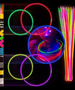 ¿Estás buscando entretenimiento impresionante para tu evento ¿Quieres añadir diversión a esa fiesta de cumpleaños que has estado planeando Con el Paquete de Fiesta de Varitas Luminosas Exquisite, tus invitados tendrán el mejor tiempo de sus vidas bailando toda la noche. Estos geniales suministros de fiesta le darán pizazz y vida a todas tus celebraciones de Halloween y festividades, o fiesta en la piscina y clubes. ¿Qué incluye el set: – 100 collares luminosos de 22 pulgadas – 100 pulseras luminosas de 8 pulgadas Características del producto: – Calidad premium. – Duradero. – Colores surtidos: Rojo, Amarillo, Azul, Verde, Morado. – Conectores de bonificación. – De 6 a 12 horas de tiempo luminoso. – Empaquetado en tubos. – Seguro para niños. – No tóxico. – Cumple con la CPSIA. – Horas de diversión. – Larga vida útil. Te garantizamos que tendrás una fiesta increíble. Si por alguna razón no estás satisfecho con tus varitas luminosas, contáctanos y resolveremos cualquier problema que puedas tener. ¡Fiesta en breve!