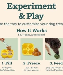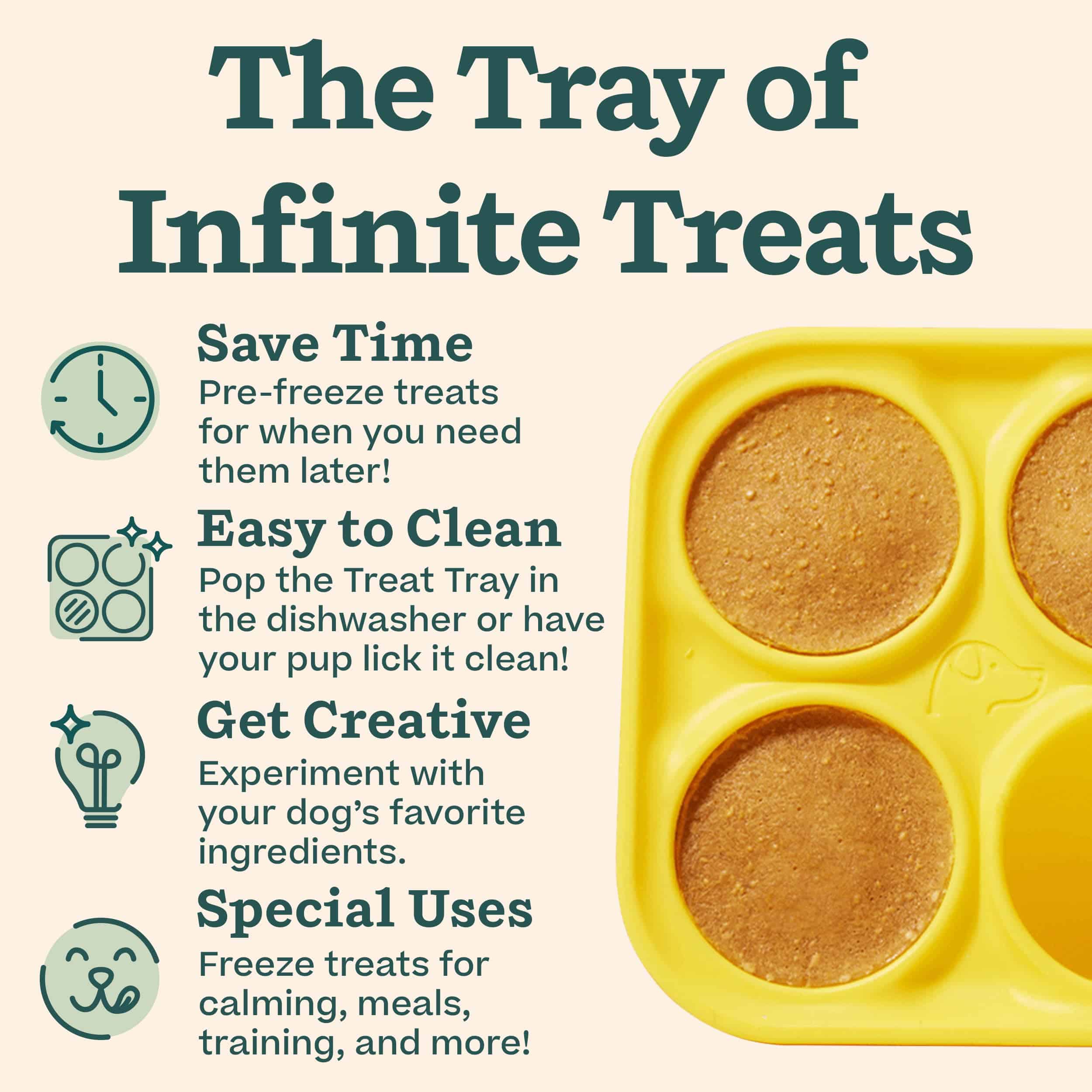 4. Disfruta de Infinitas Golosinas: ¿Se acabaron los pops? ¡No te preocupes! Puedes poner cualquier cosa en nuestra Bandeja de Premios, desde comida húmeda, caldo, yogurt, mantequilla de maní, golosinas para perros, ¡y más! Ahora puedes hacer golosinas caseras con ingredientes en los que confías y que a tu perro le encantan. No tengas miedo de experimentar.