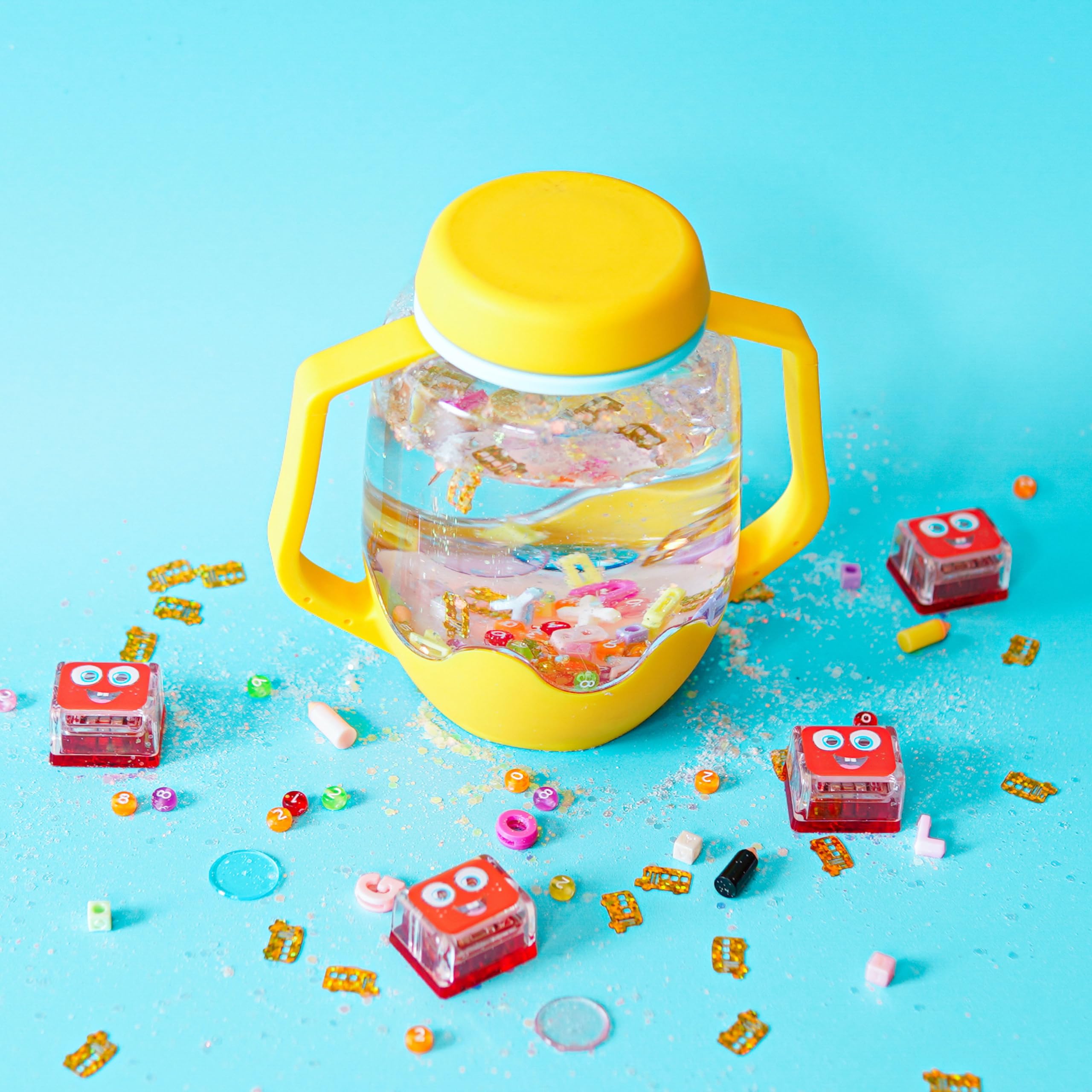 Perfecto para juego sensorial en movimiento! Los paquetes de juego sensorial Glo Pals incluyen todo lo que necesitas para crear una experiencia sensorial fascinante y tranquila para los niños. El paquete de juego sensorial Fácil como ABC incluye un tarro de juego sensorial amarillo con luz, un paquete de rellenos divertidos ABC y 123, y un paquete de 4 Cubos de Luz Roja Sammy de Glo Pals. Soporta el desarrollo sensorial: habilidades cognitivas, expresión creativa, reconocimiento de colores, experimentación, percepción visual, reconocimiento de formas, habilidades motoras finas y causa y efecto. El tarro de juego sensorial con luz amarilla se llena con agua del grifo, se añaden tus rellenos favoritos, se sella la tapa con cerradura a prueba de niños, ¡y luego se toca para cambiar de color! (Requiere 3 pilas AAA no incluidas). Los rellenos divertidos ABC y 123 eliminan la molestia de curar la actividad de juego sensorial perfecta. Cada paquete incluye accesorios sensoriales temáticos que llevan el tiempo de juego al siguiente nivel! Úsalo con el tarro de juego sensorial o añádelo a tu cubo sensorial favorito. ¡Perfecto para mezclar con agua, arroz, slime, plastilina y más! Cubos de luz Glo Pals activados por agua. ¡Cada cubo reutilizable con luz vibrante dura un mínimo de 16 horas iluminadas o aproximadamente 30 días de juego regular! Diseñado y empaquetado a mano en Mississippi por una empresa pequeña con base en Estados Unidos. Los beneficios de cada compra apoyan al Hospital Infantil Batson de Mississippi. Glo Pals supera todos los estándares de seguridad de EE. UU. para garantizar que nuestros productos sean seguros para los niños. Las pilas no de litio están selladas herméticamente dentro de cada Cubo de Luz, manteniéndolos herméticos y seguros. Aunque esto significa que nuestros Cubos de Luz son excepcionalmente seguros, no se pueden reemplazar ni recargar. ¡Pero nuestros productos se pueden reciclar! Por favor contáctanos si tienes alguna pregunta sobre la seguridad del producto o el reciclaje. El paquete de juego sensorial Fácil como ABC incluye: (1) Tarro de Juego Sensorial Amarillo (requiere 3 pilas AAA, no incluidas), (1) paquete de Rellenos Divertidos ABC y 123, y (1) paquete de 4 Cubos de Luz Roja Sammy de Glo Pals. ¡Perfecto para juego sensorial en movimiento y posibilidades de juego interminables!