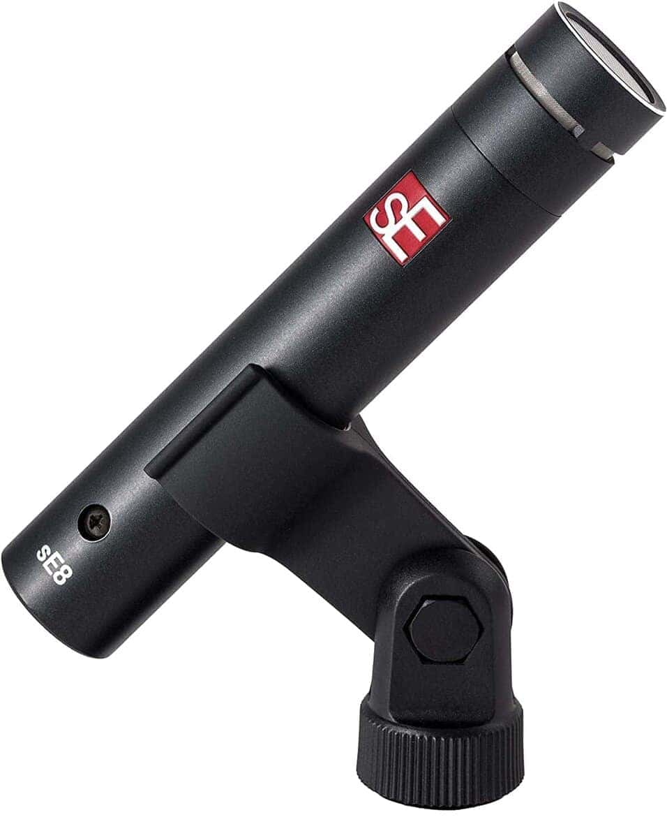El sE8, pequeño en estatura, enorme en sonido. Apto para cualquier desafío en el estudio o en el escenario, el sE8 es un nuevo micrófono de condensador de diafragma pequeño de alto rendimiento, recién salido de los laboratorios de sE. Su nueva cápsula hecha a mano implementa un sofisticado diseño de placa posterior que proporciona un sonido perfectamente equilibrado, por lo que nunca es agresivo, perfecto para fuentes como hi-hats y overheads de batería. Tambien es uno de los micrófonos de cápsula pequeña más silenciosos del planeta y con el rango dinámico y manejo de SPL más alto de su clase, junto con atenuaciones y filtros de corte de bajos para una flexibilidad sobresaliente, el sE8 está listo para cualquier sonido que estés haciendo, ya sea en el entorno de estudio o en aplicaciones exigentes en el escenario. Tipo de cápsula: Verdadero condensador de diafragma pequeño hecho a mano Patrón polar: Cardioide Rango de frecuencia: 20 Hz – 20 kHz Sensibilidad: 25 mV/Pa (32 dBV) SPL máximo: 139 / 149 / 159 dBSPL (atenuación de 0/10/20 dB) (THD 0.5% a 1 kHz) Nivel de ruido equivalente: 13 dB(A) Rango dinámico: 126 / 136 / 146 dB (atenuación de 0/10/20 dB) Relación señal/ruido: 81 dB Filtro de corte de bajos: 80 / 160 Hz, 6 dB/octava, conmutable Pad de atenuación: 10 / 20 dB, conmutable Alimentación: 48 Voltios según IEC 61938 Impedancia eléctrica: 110 Ohmios Impedancia de carga recomendada: 1k Ohmios Consumo de corriente: 2.7 mA Conexión: Conector XLR macho de 3 pines Dimensiones: Diámetro: 23 mm (0.91 pulg.), Longitud 120 mm (4.72 pulg.) Peso: 141 g (4.97 oz.)