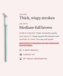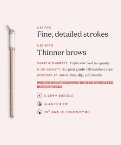 El diseño de la aguja: La variedad de agujas de diámetro de 0.25 mm y 0.35 mm están colocadas en un ángulo de 30 grados para una aplicación óptima de pigmentos y ergonomía. Cubierta de aguja: Envoltura de acero inoxidable duro. Recomendado para nuevos artistas que deseen probar cada configuración y para artistas experimentados y entrenadores que deseen agregar más herramientas a su kit profesional. Mango ergonómico: Tina Davies Professional se aseguró de que tus dedos nunca hayan tenido un mejor agarre. Los mangos suaves y antideslizantes te permiten trabajar con precisión y comodidad con una regla incorporada en el mango para asegurarte de que tu trabajo sea uniforme y simétrico. Listo para usar: Incluye 8 herramientas envueltas individualmente por caja. No se requiere ensamblaje. Uso único, desechar después de usar. Seguro y estéril: Nuestros suministros de microblading están hechos con acero inoxidable quirúrgico 316 y están esterilizados con gas EO para mantener seguros a tus clientes. Cada microcuchilla está cubierta con una tapa protectora para mantener las agujas seguras durante el transporte.