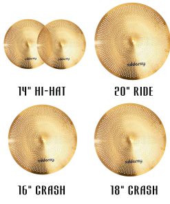 1. Incluye: el set de platillos de bajo volumen consta de 5 piezas: un par de 14′ Hi-Hats + un 16′ crash + un 18′ crash + un 20′ ride. Y una bolsa de platillos GRATIS. 2. Volumen y Sonido Bajos: Los platillos de volumen bajo son 70%-80% más silenciosos que los platillos tradicionales, y se sienten como platillos reales al tocarlos. Sonido bajo, brillante y crujiente, toca más tiempo sin fatiga auditiva o daño auditivo. 3. Calidad de Alto Grado: Los platillos de volumen bajo están hechos de metal grueso, robusto y duradero. Toda la superficie del platillo silencioso ha sido pulida para que la superficie y los bordes sean más suaves. Mano de obra fina y aspecto sofisticado. 4. Diseño de Pequeños Agujeros: Pequeños agujeros en la cara de cada platillo son hábilmente perforados a mano uno por uno para producir tonos de platillo bellamente ricos y claros con un volumen más bajo. 5. Adecuado Para Más Ocasiones: Los platillos de bajo ruido son ideales para apartamentos, dormitorios, salas de ensayo y otros lugares, pueden usarse con cualquier batería, para bateristas y principiantes. Ya sea que estés practicando en casa o actuando en el escenario.