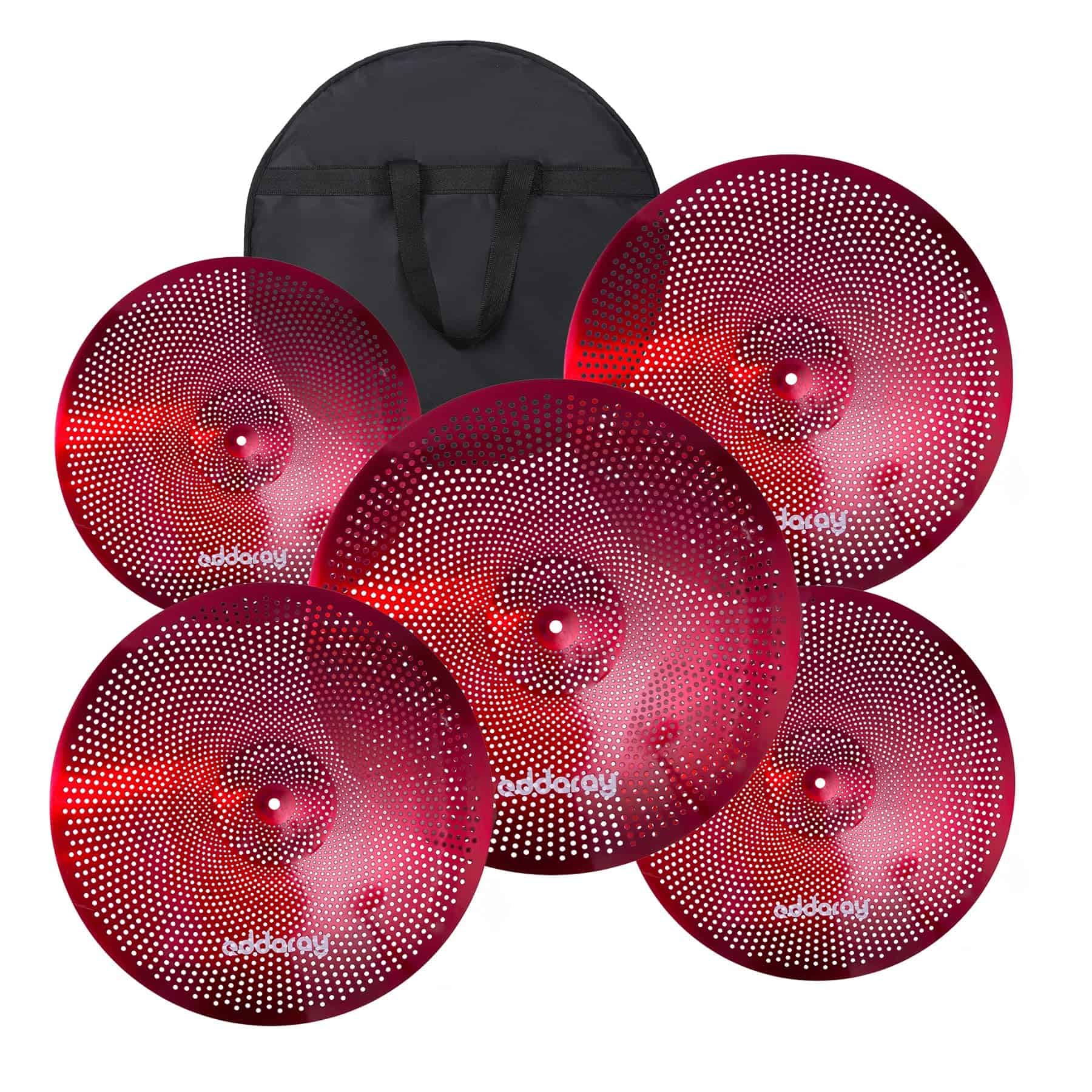 1. Incluye: el juego de platillos de bajo volumen de 5 piezas: un par de 14′ Hihats + un 16′ crash + un 18′ crash + un 20′ ride. Y una bolsa de platillos GRATIS.
