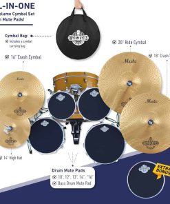 1. Juego completo de 12 piezas en uno, silencioso set de práctica de batería – Incluye un completo juego de 5 piezas de platillos de volumen bajo para batería, 5 almoadillas de silenciador de batería, 1 almohadilla de silenciador de bombo y una conveniente bolsa de platillos. ¡Un regalo perfecto para los bateristas!.