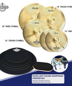 2. Reduzca el choque y el clangor – Nuestro juego completo de platillos de volumen bajo incluye un juego de hi hat cymbal de 14 pulgadas, crash cymbal de 16 pulgadas, crash cymbal de 18 pulgadas y un ride cymbal de 20 pulgadas. Los platillos están hechos de acero de aleación de alta calidad que ofrece mayor durabilidad y tono en comparación con los platillos de acero. A pesar del volumen reducido, siguen produciendo notas claras mientras practicas tus grooves y rudimentos.