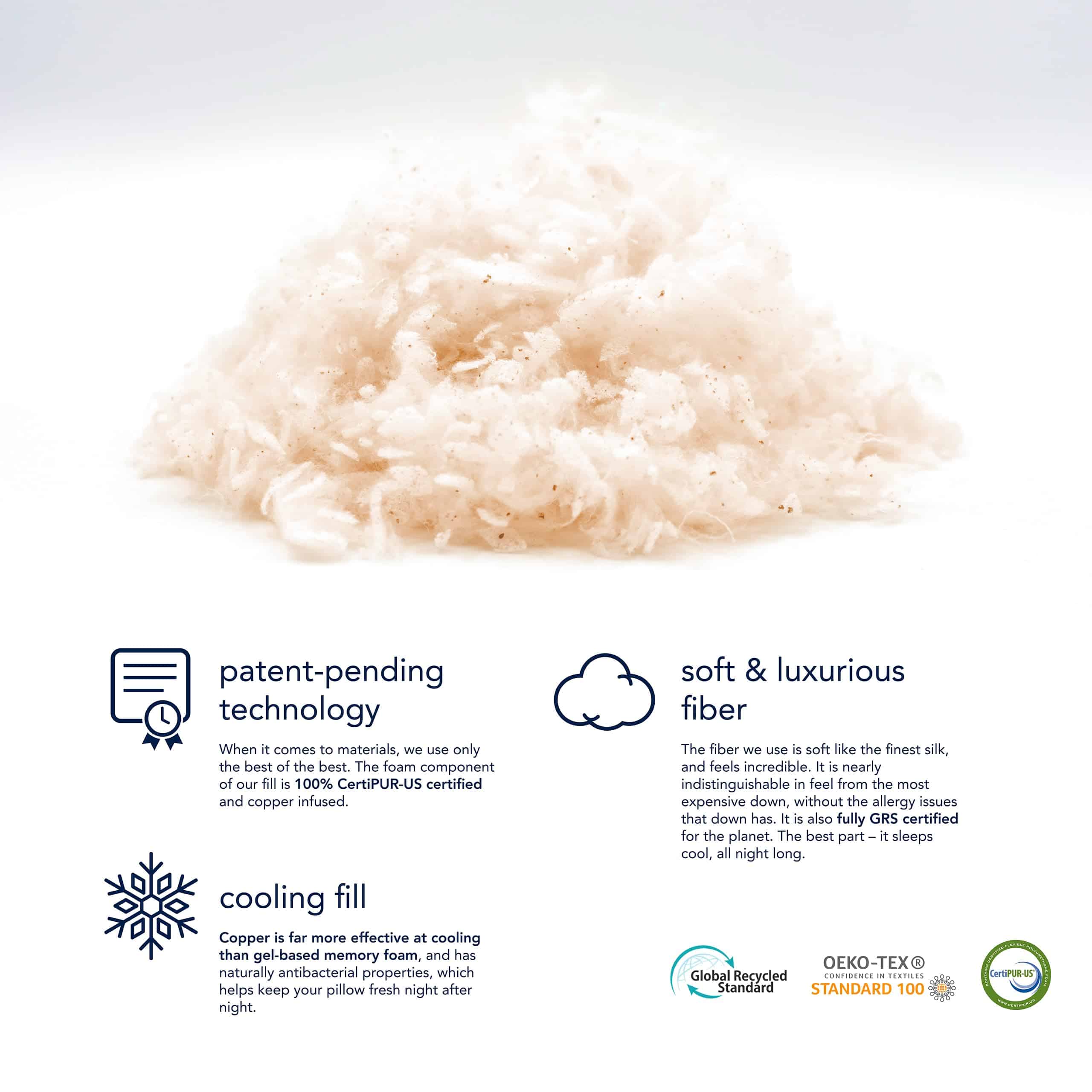 3. LA ÚNICA ALMOHADA CON NUESTRO EXCLUSIVO RELLENO DE SOPORTE DE COBRE ENFRIANTE: Hecho por una empresa familiar y Hecho en EE. UU., nuestro relleno patentado utiliza 3 componentes diferentes (la mayoría de las almohadas utilizan 1 o 2), incluyendo 2 tipos diferentes de espuma de memoria de gel de cobre enfriante CertiPUR-US Certified. Este 3er ingrediente hace que nuestro relleno sea más compatible, más duradero, más enfriador y, créalo o no, más suave y lujoso.
