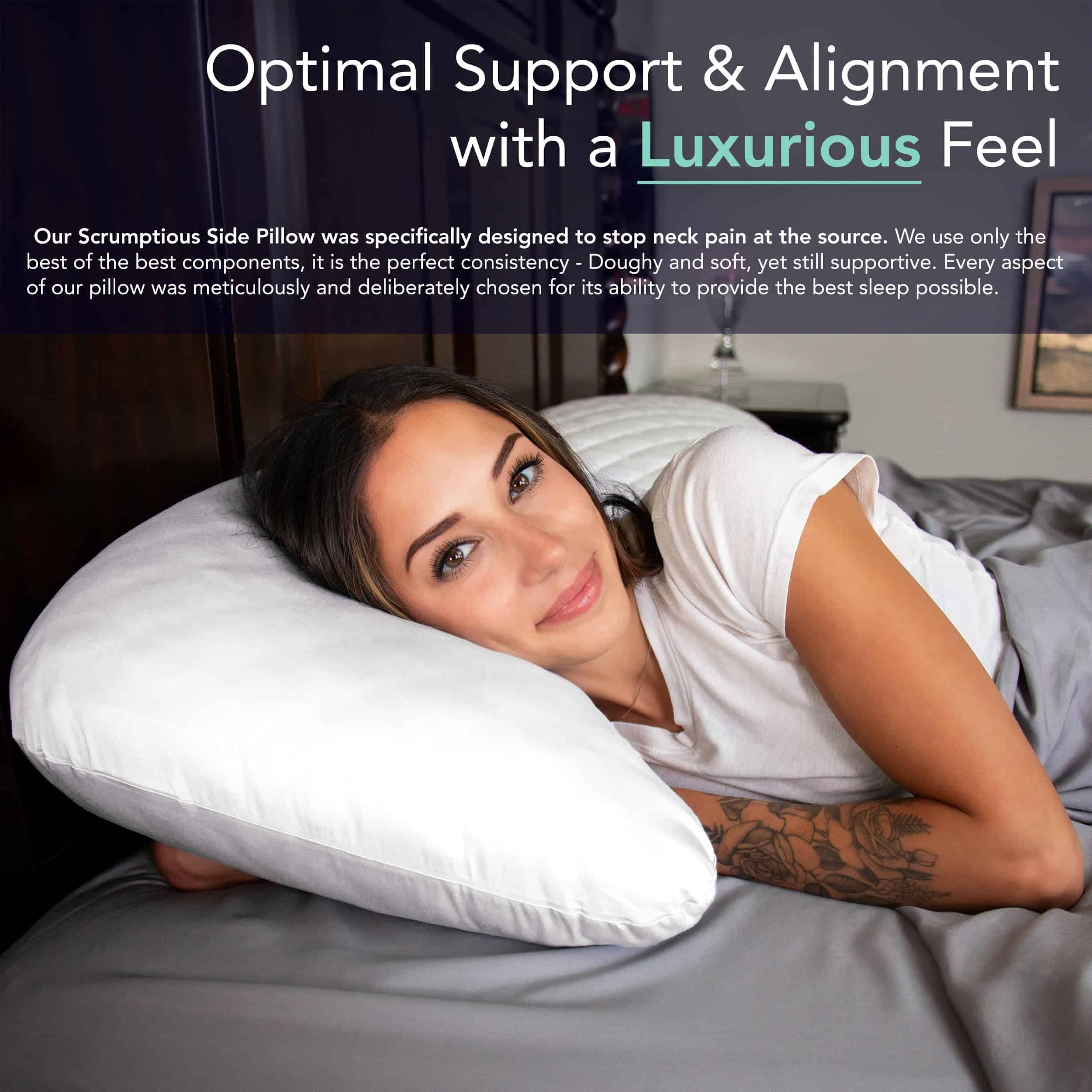 2. DISEÑADO POR EXPERTOS EN SUEÑO PARA DETENER EL DOLOR DE CUELLO: Cada borde de nuestra almohada tiene una leve curva (sin esquinas) para un soporte ergonómico del cuello. Nuestra tela lateral estructural mantiene su perfil durante toda la noche, reduciendo el volteo y asegurando que no te despiertes con dolor.
