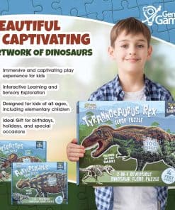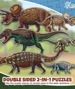 ¡Presentamos nuestra nueva línea de Rompecabezas Turn N Learn, donde el aprendizaje se encuentra con la emoción! Inicia el viaje de tu hijo al mundo de los dinosaurios con nuestros cautivadores rompecabezas de dinosaurios gigantes. Diseñados para niños de todas las edades, cada rompecabezas presenta una sorprendente obra de arte de estas magníficas criaturas por un lado, transportando a tu pequeño a un paisaje prehistórico lleno de maravilla y aventura. ¡Pero la emoción no termina ahí! Voltea los rompecabezas para revelar una reconstrucción fosforescente científicamente precisa de los esqueletos de dinosaurios en el otro lado. Observa cómo la habitación cobra vida con huesos brillantes, proporcionando una experiencia interactiva y asombrosa que dejará a tu hijo fascinado. Entendemos la importancia de fomentar la curiosidad y ampliar el conocimiento, por eso hemos incluido Guías de Ciencia con cada rompecabezas. Estas guías están repletas de información fascinante sobre paleontología y datos curiosos cautivadores sobre estas criaturas excepcionales. A medida que tu hijo se involucra con los rompecabezas y lee las Guías de Ciencia, se sumergirá más en el mundo de los dinosaurios, aprendiendo sobre su comportamiento, hábitats y características únicas. Estos rompecabezas no solo son una herramienta educativa emocionante, sino que también ofrecen numerosos beneficios desarrolloles. Armar los rompecabezas de 100 piezas promueve habilidades cognitivas, habilidades para resolver problemas y desarrollo de motricidad fina, todo mientras sumerge a tu hijo en el fascinante mundo de los dinosaurios. La satisfacción de completar el rompecabezas aumentará su confianza y sensación de logro.
