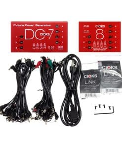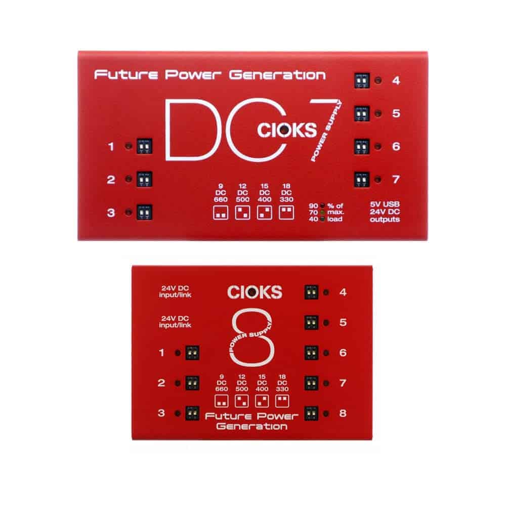 1. Perfil revolucionario de 1 pulgada (25,4 mm) en ambos DC7 y CIOKS 8 Expander. 2. Ruido ultra bajo logrado mediante filtrado multietapa. 3. 7 salidas de CC aisladas de 6W cada una en CIOKS DC7. 4. 8 salidas de CC aisladas de 6W cada una en CIOKS 8 Expander. 5. 660mA a 9V CC en cada salida en ambos CIOKS DC7 y CIOKS 8, 4 voltajes seleccionables en cada salida en ambos CIOKS DC7 y CIOKS 8. 6. Salida USB de 5V para un máximo de 1A, salida auxiliar de 24V CC con un máximo de 2A. 7. Tres medidores de energía LED que muestran la carga total de ambas fuentes de alimentación. 8. Se puede expandir agregando un kit de expansión CIOKS 4 o un CIOKS 8 Expander por separado.