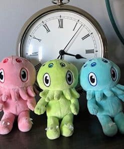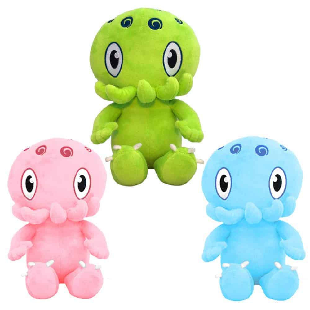 ¡NUEVA EDICIÓN LIMITADA DE PELUCHES BABY C IS FOR CTHULHU! ¡Obtén un set completo de peluches Baby Cthulhu VERDE, ROSA Y AZUL! ¡LOS MÁS LINDOS Y ABRACITOSOS DIOSES ANCESTRALES HASTA AHORA DE LOS CREADORES DE C IS FOR CTHULHU Y SWEET DREAMS CTHULHU! Diseñados y fabricados a mano con el mismo cuidado y material suave y lujoso que nuestra línea original de peluches C is for Cthulhu, estos nuevos peluches Baby Cthulhu seguramente devorarán los corazones y mentes de todos los que se atrevan a abrazarlos.