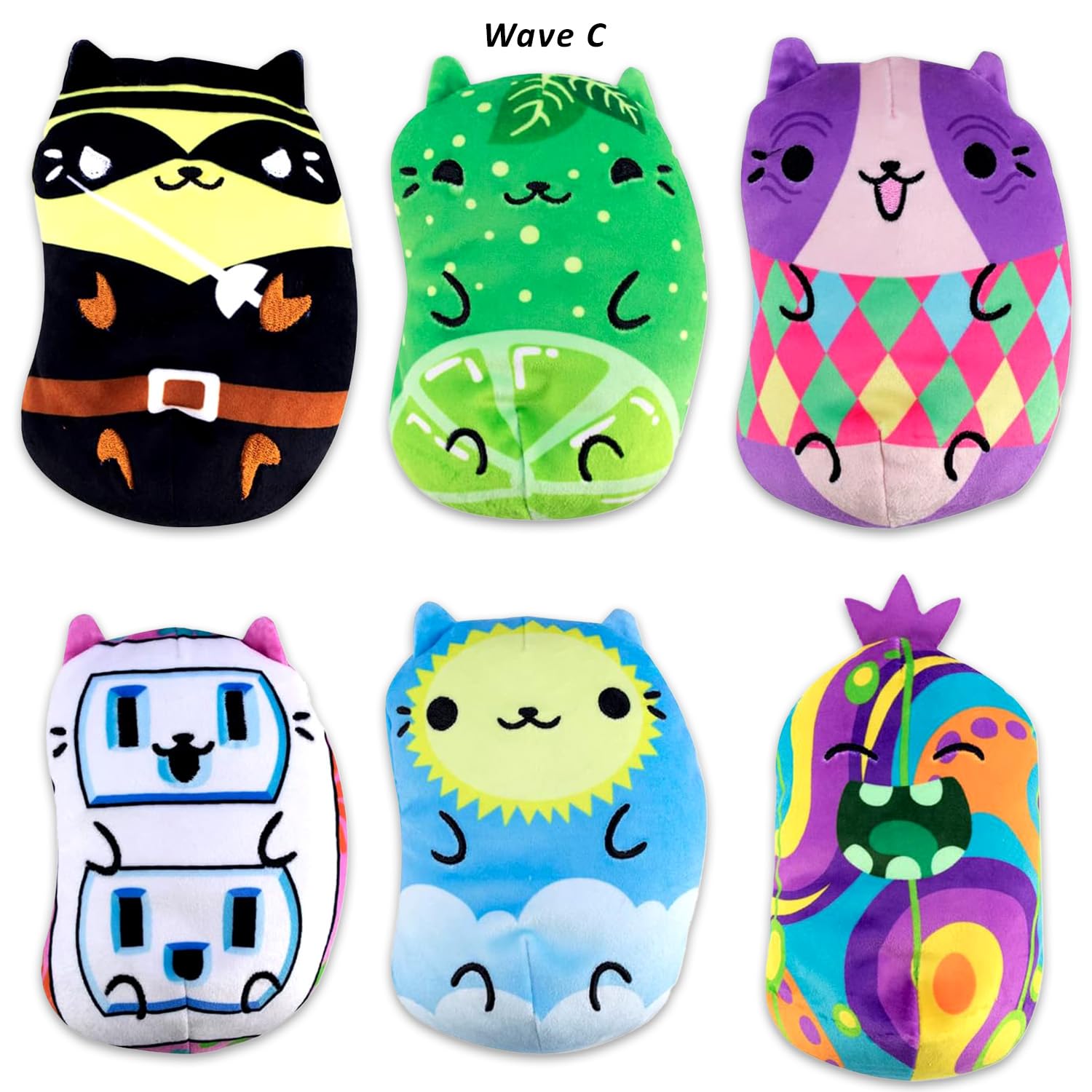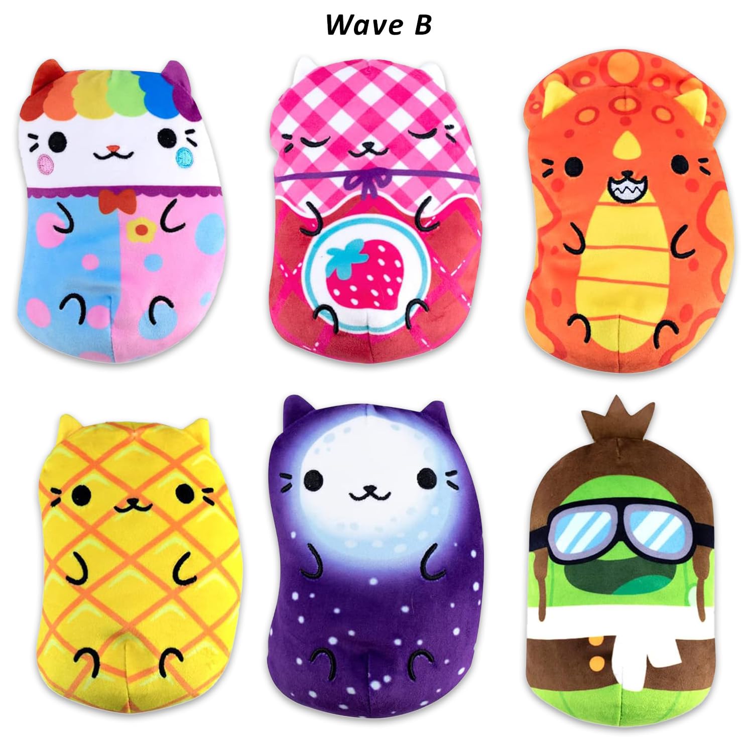 Paquete de variedad de bolsas de misterio de peluches Chonks de Cats Vs Pickles ~ Paquete de 12 de Ola de Oro A, B, C y D Super Suaves de Bean-Filled Plushies para Niños Niñas | Set de peluches Cats Vs Pickles. Este paquete de variedad de bolsas de misterio de Cats vs Pickles incluye 12 bolsas de misterio, 3 de cada Ola A, B, C y D. ¡Cada bolsa de misterio incluye una figura misteriosa de un gato colorido o un pepinillo! Seguro que será un éxito con niños a partir de 4 años, tanto niños como niñas. Estas bolsas de misterio de Cats vs Pickles son ideales para usar como regalos de fiesta de cumpleaños, suministros de fiesta, rellenos de bolsas de regalos, rellenadores de bolsas de botín y más. Disfruta del misterio de abrir tu nueva bolsa de misterio de Cats vs Pickles para revelar tu propio peluche lleno de frijoles. ¡Únete al equipo del gato o al equipo del pepinillo y comercia con tus amigos! Paquete de variedad de bolsas de misterio de Cats vs Pickles con licencia oficial para niños, tanto niños como niñas. El set también incluye pegatinas de gatito unicornio arcoíris.