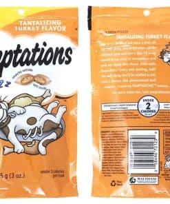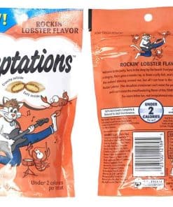 Paquete de variedades de golosinas para gatos Temptations de 4 bolsas de sabores (Langosta Rockin’, Camarón Delicioso, Atún Tentador, Pavo Tentador; 3 oz cada una)