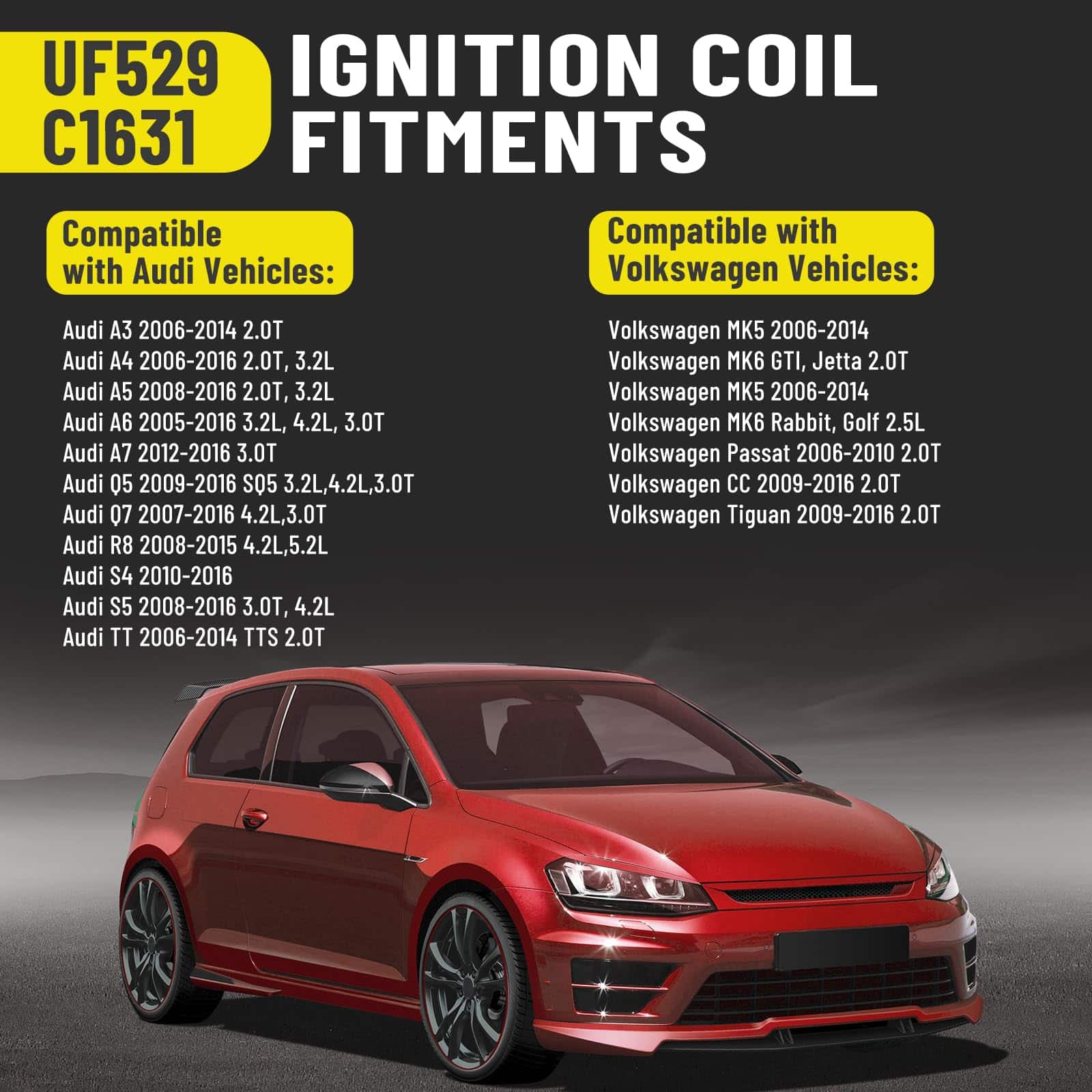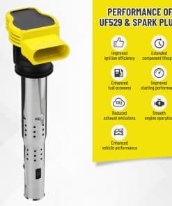 El juego de paquetes de bobinas de encendido UF529 y bujías 4644 es una solución completa para mantener el sistema de encendido de tu vehículo en óptimas condiciones. Las bobinas de cobre alemán envueltas en caucho de poliéster garantizan la estabilidad y fiabilidad del sistema de encendido, resistiendo diversas condiciones de conducción exigentes. Las bujías de iridio de alta calidad producen chispas potentes y estables para maximizar la eficiencia de la combustión, lo que resulta en excelente potencia y economía de combustible. La instalación es sencilla y no requiere habilidades profesionales, lo que te permite completarla fácilmente y ahorrar tiempo y esfuerzo. Compatible con una amplia gama de modelos Audi y VW, incluidos Audi A3, A4, A5, A6, A7, Q5, SQ5, Q7, R8, S4, S5, TT, TTS, y VW Jetta, GTI, Rabbit, Golf, Passat, CC. Actualiza el sistema de encendido de tu vehículo con este juego de bobinas de encendido y bujías de alta calidad para un rendimiento óptimo y confiable.