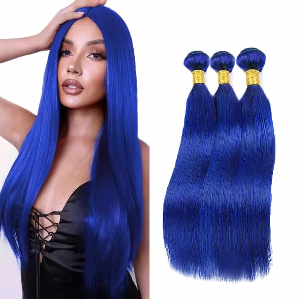 2. Color de cabello liso azul: los paquetes de cabello son de color azul.