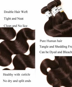 1) Tipo de Cabello: Paquetes de Cabello Marrón Oscuro, Paquetes de Cabello Humano Liso Brasileño. 2) Calidad del Cabello: Paquetes de Cabello Liso Marrón Oscuro, Fuerte Doble Trama, Sin Derrames. Sin Enredos. Suave y Sedoso. Grueso y Sin Puntas Abiertas. Puede ser Blanqueado, Teñido, Planchado y Estilizado como Desee. 3) Color del Cabello: Color Marrón Oscuro #2, Muy hermoso y a la moda. Puedes hacer trenzas cosidas o hacer colas de caballo y pelucas. 4) Longitud del Cabello: De 10 a 24 pulgadas en Stock, Contactar al Vendedor para Otra Longitud. 5) Productos Relacionados: Cabello Virgen Brasileño. 6) Textura Relacionada: Onda Suelta, Onda de Agua, Rizada, Onda Corporal.