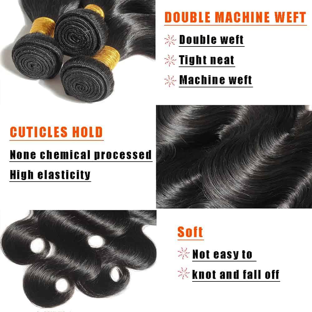 1. Material de paquete de cabello humano: Cabello virgen no procesado, grado superior 12A, no propenso a enredos y caída de cabello, limpio, suave, sin olor, alta elasticidad, fácil de mantener, manteniéndote hermosa por mucho tiempo, dándote una apariencia completa y sedosa. 2. Ventajas de las extensiones de cabello humano: Adecuado para que las mujeres reciban extensiones de cabello, utilizando cabello humano, extensiones perfectas sin costuras e invisibles, doble croché, muy suave y sedoso, densidad completa, tejidos suaves, hilos de trama elásticos y brillantes, alta elasticidad, extremo grueso, capa córnea unidireccional, no se anuda ni se cae fácilmente, sin tratamiento químico, sin olor, sin piojos. 3. Color 1B negro natural del paquete de cabello humano longitud, peso: paquetes de cabello trenzado de 12 a 34 pulgadas, 1005 gramos por paquete. La longitud y el peso reales, generalmente 3 paquetes de paquetes de cabello humano son suficientes para formar un peinado completo y hermoso. Para la longitud, alise el paquete de cabello y mídalo. Varios colores para elegir. 4. El uso de paquetes de cabello humano: Negro natural, se puede blanquear, estirar, teñir, permar, recortar, rizar, teñir y rediseñar. Muy adecuado para regalar, viajar, bodas, fiestas, ceremonias de graduación, citas, festivales, vida diaria y trabajo, y cualquier otra ocasión. 5. Servicio posventa para paquetes de cabello: Cada uno de nuestros productos se somete a estrictas pruebas de calidad para garantizar que pueda comprar con confianza. No dude en contactarnos y le responderemos en un plazo de 24 horas.