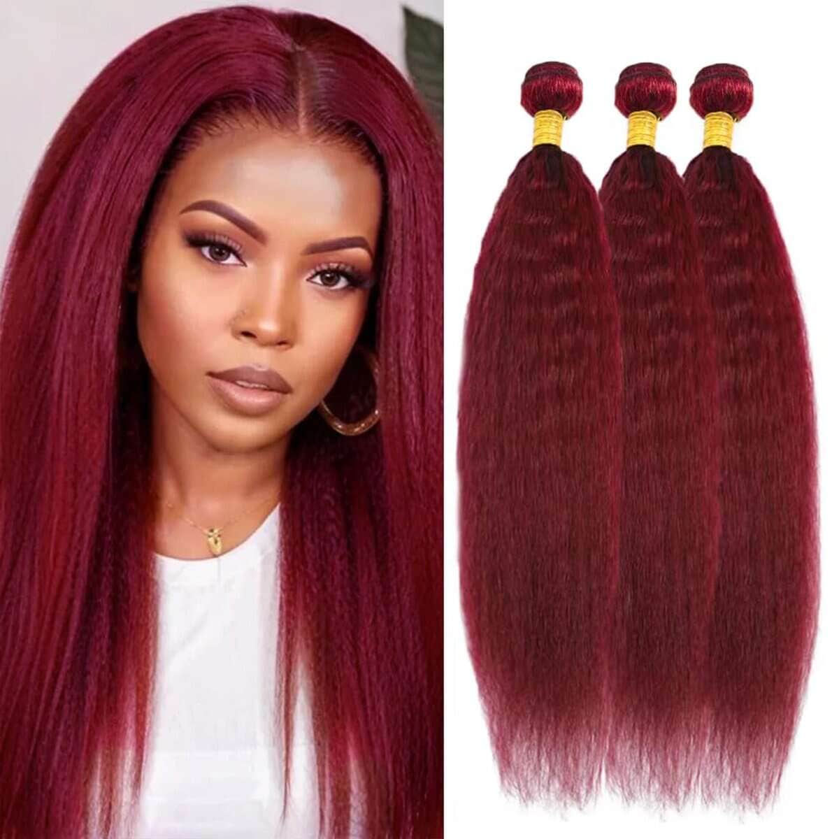 Paquetes de Cabello Humano Ondulado Yaki Rojo #99J Rojo