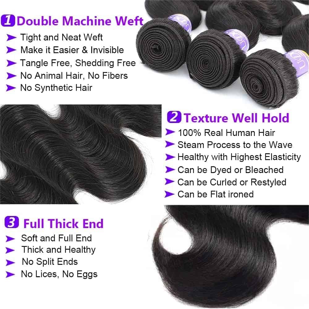 Material de excelente calidad, sin enredos, no se cae, completo, grueso, suave, esponjoso y brillante con la máxima elasticidad. Peso y longitud de los paquetes Body Wave Human Hair: 90-95g por paquete, 3 paquetes/orden, varias opciones de 8 pulgadas a 26 pulgadas. Para la longitud, estire el cabello para que esté RECTO y luego mida. Color de los paquetes de Cabello Humano Ondulado del Cuerpo: Color Negro Natural; Puede ser alisado, rizado, decolorado y estilizado como tus propios paquetes de cabello humano. Adecuado para regalos del día de San Valentín, diario, fiesta, cumpleaños, boda, chicas perezosas, trabajo diario o ejercicio, como regalo, cosplay o cualquier otra ocasión que desees.