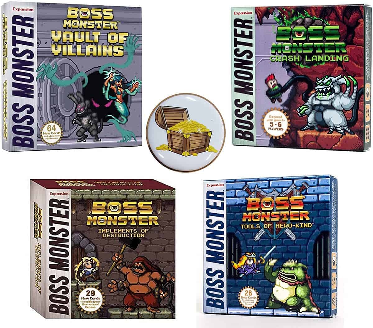 Implements of Destruction presenta 5 nuevos jefes y 24 nuevos items que se pueden jugar con Boss Monster o Boss Monster 2. Incluye items del Explorador para tus juegos de Crash Landing de 5-6 jugadores.