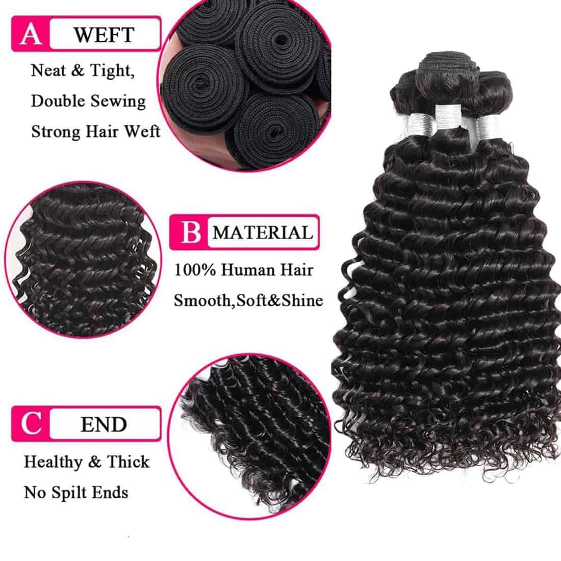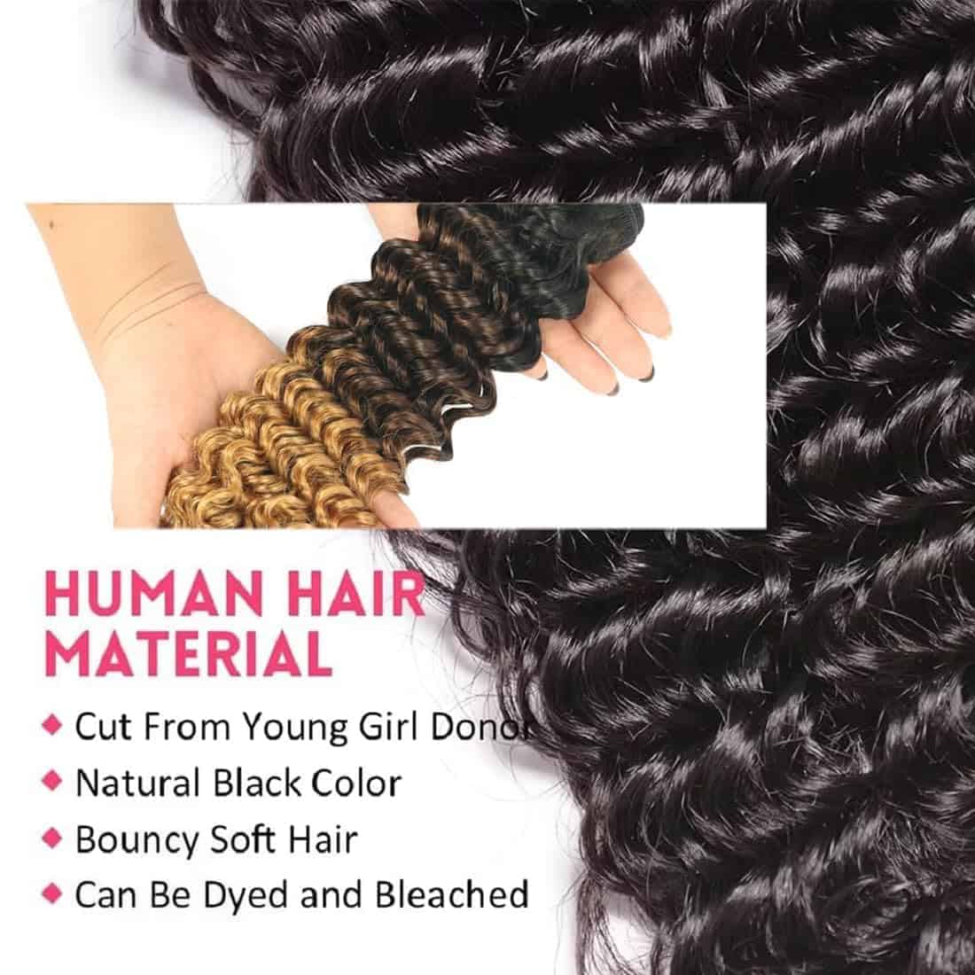 2. Calidad de los Paquetes de Cabello Humano Onda Profunda: Cabello Humano Original de Onda de Agua Brasileño 12A, Cabello Húmedo y Ondulado; Doble Trama a Máquina, Atado a Mano, Lleno y Suave, Puntas de Cabello Saludables; Raramente Enredado, Casi sin Caída y Sin Olor, Color Negro Natural, Son Duraderos, No se Deforman con Facilidad y No se Dañan.