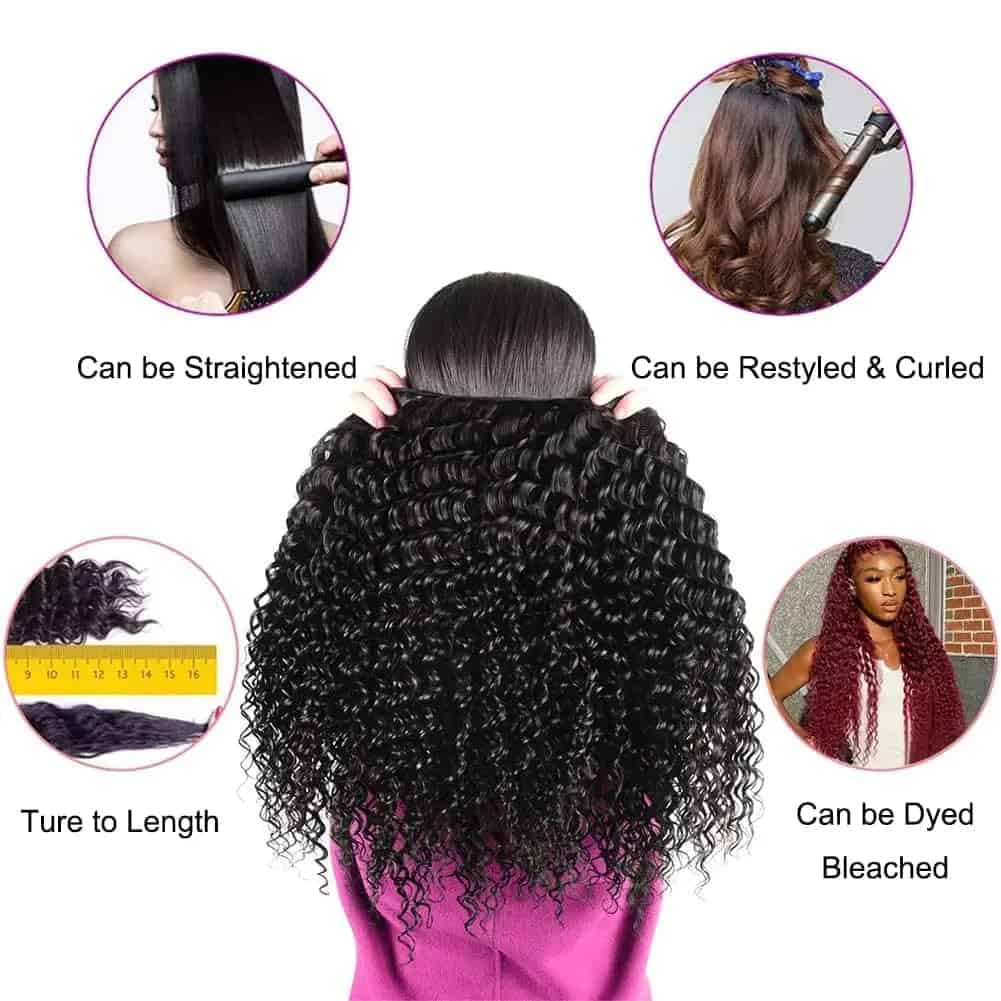 4. Ventajas de los Paquetes de Cabello Humano: 100% Cabello Humano Virgen Brasileño sin Procesar, Cabello Virgen de Onda de Agua Brasileño Teñido u Otramente Tratado, Puede ser Alisado, Teñido, Permanente, Resaltado, Rizado y Restilizado.