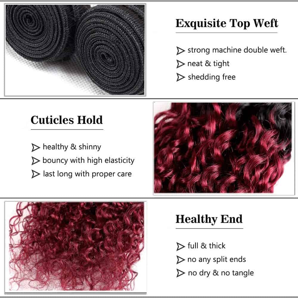 2. Color de los Paquetes Ombre: El Paquete es 1B99J Rojo Vino, Negro a Borgoña.