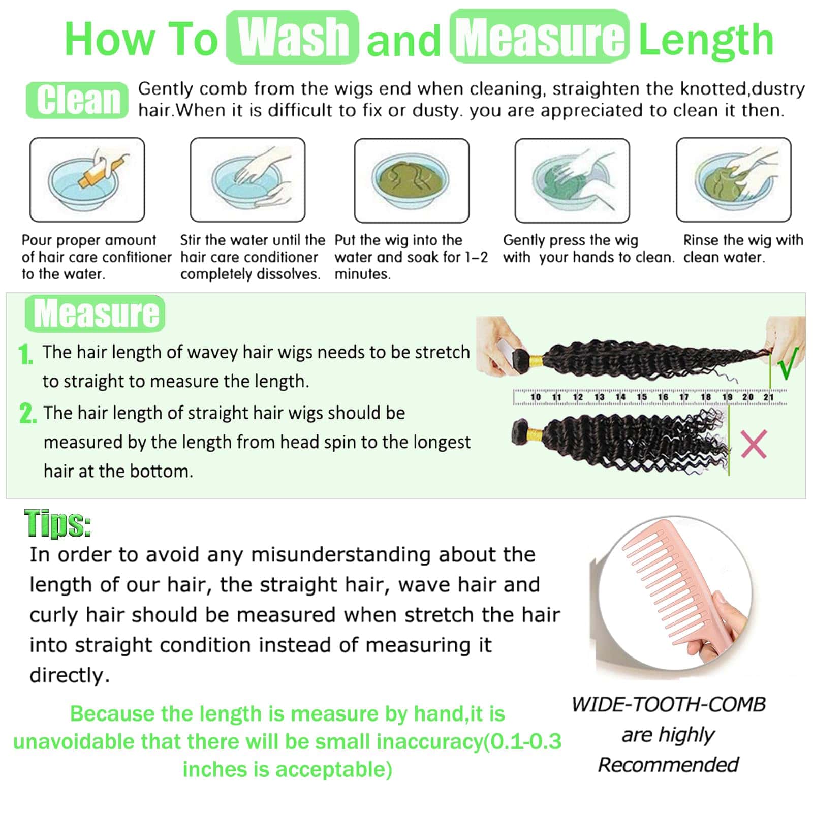 5. Escena de Uso de los Paquetes de Ondas Profundas: Paquetes de Pelo Humano de Ondas Profundas Virginianas Brasileñas Adecuados para el Uso Diario, Fiesta, Cumpleaños, Boda, Chicas Perezosas, Trabajo Diario o Entrenamiento, Cosplay o Cualquier Otra Ocasión que Desees. Muestra tu Confianza y Encanto. Una Longitud Más Larga Lucirá Más Delgada y se Necesitan 3-5 Paquetes para una Cabeza Llena de Pelo Largo. Método Correcto de Medición de la Longitud de los Paquetes de Pelo Humano de Ondas Profundas: Alisar el paquete y luego Medirlo.