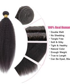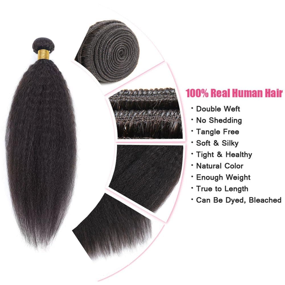 1. Material: Paquetes de Pelo Humano Kinky Straight 10a Brasileño Virgen, 100% Pelo Humano Sin Procesar, Suave y Natural, Saludable y Vibrante.