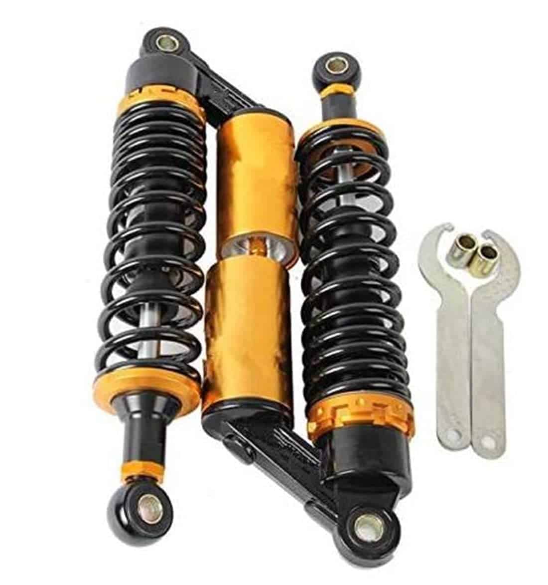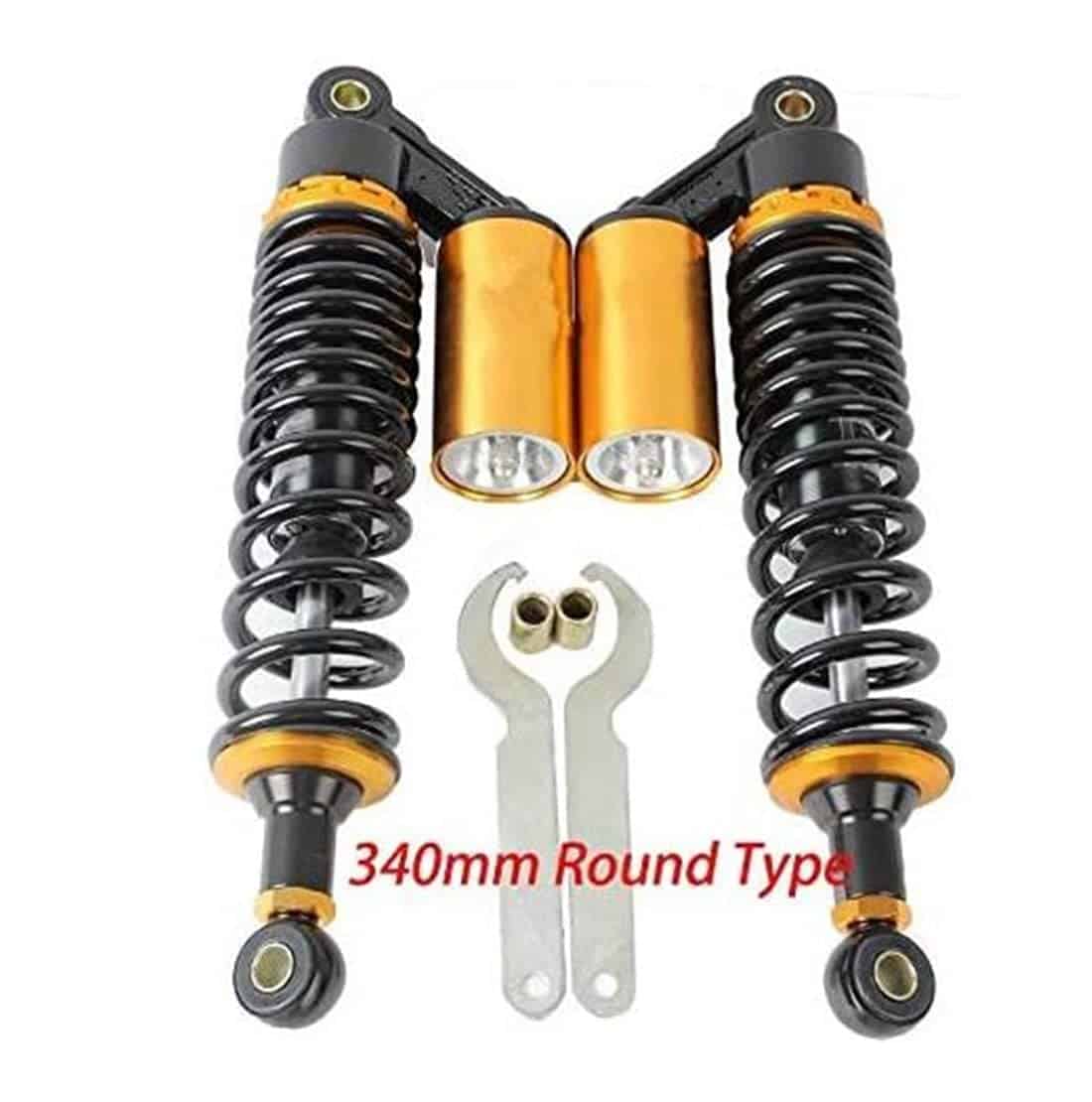 Ajuste Universal. Funciona perfectamente en la mayoría de las motocicletas de calle de 150cc~750cc, scooters y Moped Quad (ATV) con amortiguadores de 340mm de distancia entre ojo y ojo. Excelente elección para reemplazo, actualización de estilo y todo tipo de modificación de bicicletas. Por favor, verifique las dimensiones a continuación antes de ofertar.