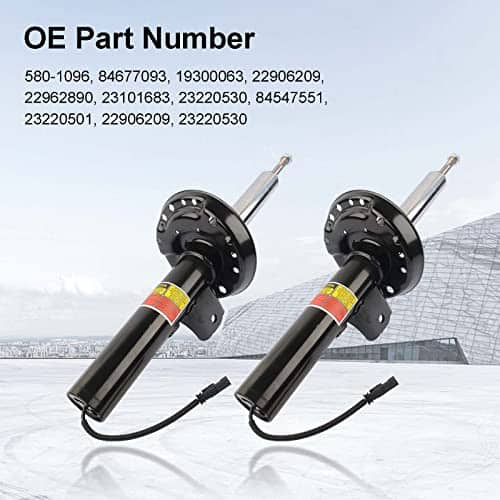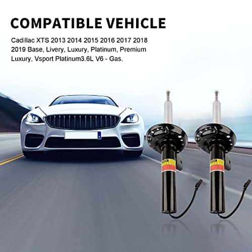 Par de amortiguadores delanteros con absorción de choques eléctricos compatible con Cadillac XTS 2013-2019 22906209 22962890 23101683 84547551. Sustituye a Cadillac XTS 2013 2014 2015 2016 2017 2018 2019 Base, Livery, Luxury, Platinum, Premium Luxury, Vsport Platinum 3.6L V6 – Gas. Ha pasado por extensas pruebas de calidad y rendimiento de seguridad. Por favor, verifique cuidadosamente el año, la marca y el modelo de su vehículo con nuestra descripción.