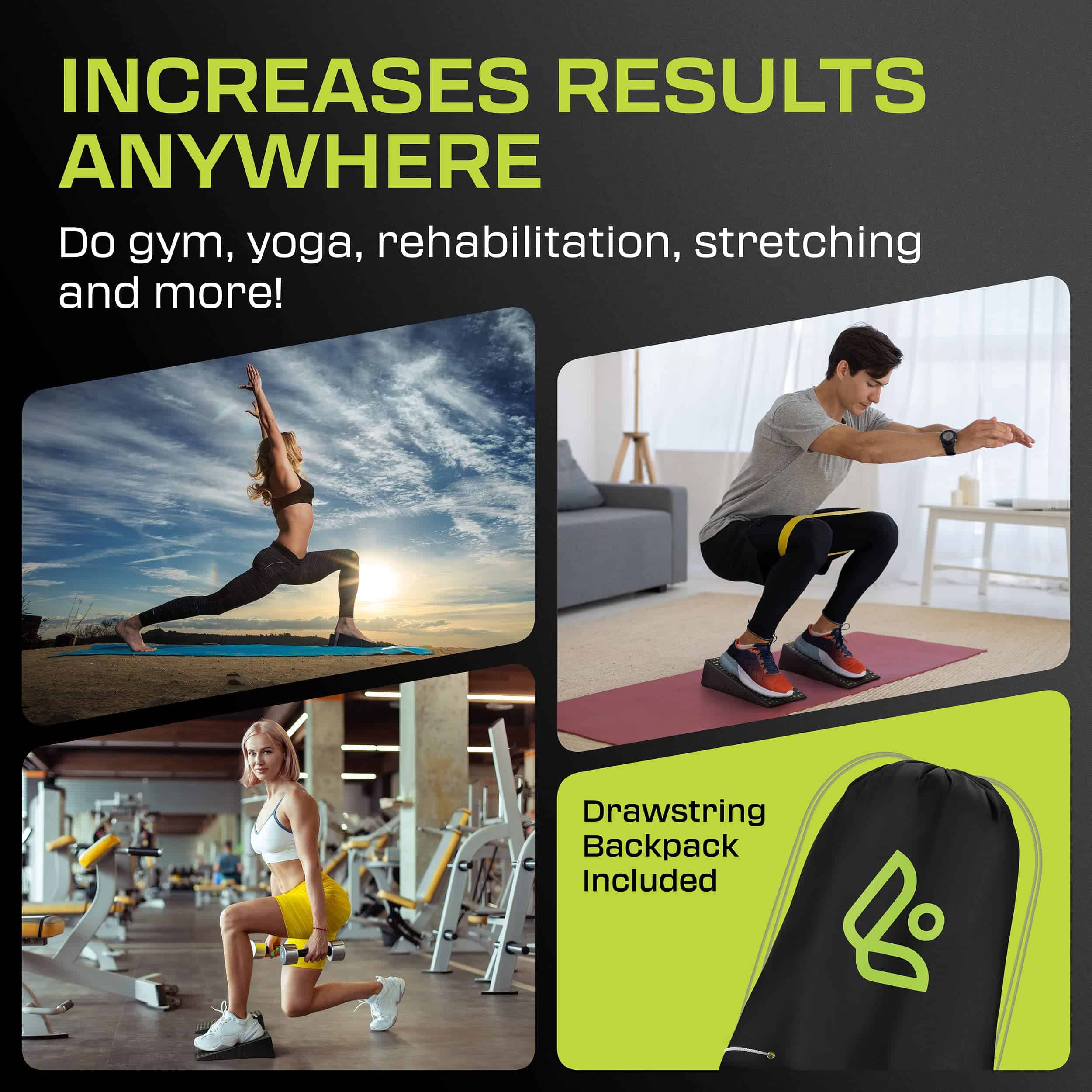 5. HERRAMIENTA DE FITNESS VERSÁTIL PARA TODOS LOS NIVELES: Adecuada para todos los niveles de fitness, la tabla de inclinación para estirar pantorrillas Flexelent es ideal para yoga, lunges y elevación de pantorrillas. Esta cuña para squats o bloque de pantorrilla soporta una variedad de ejercicios, desde estiramientos hasta entrenamiento de fuerza.
