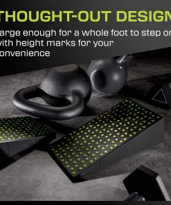 1. OPTIMIZA EL RENDIMIENTO DE LAS SENTADILLAS: Nuestra cuña para talón en squat ‘Green Lime’ eleva los talones en 17, brindando un soporte superior durante las sentadillas. Esta tabla inclinada para squat mejora la flexibilidad y la activación muscular, haciéndola un elemento imprescindible para el equipo de entrenamiento de squats y estiramientos de pantorrillas.
