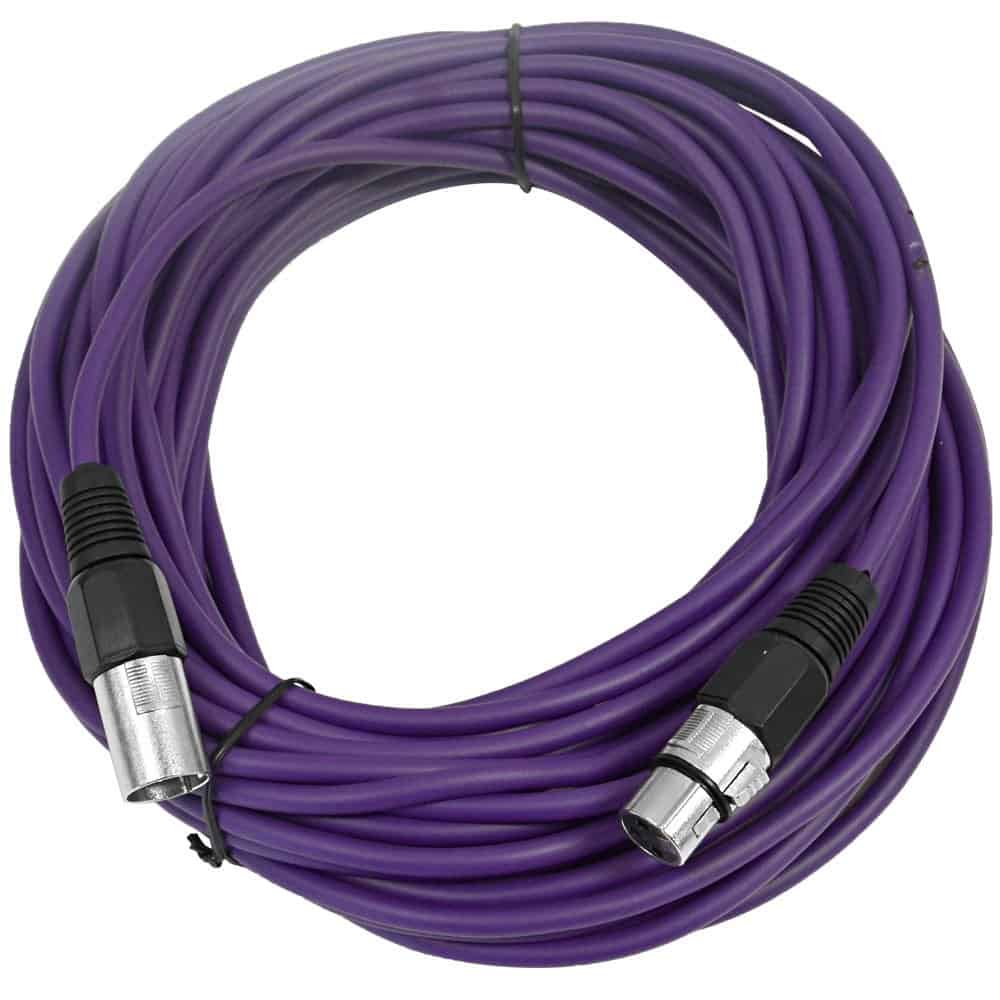 Par de Cables de Micrófono o Patch Púrpura de 50 Pies XLR Macho a Hembra (Paquete de 2). Modelo: SAXLX-50 (Par), Púrpura en color, Conector metálico XLR de 3 pines en cada extremo (macho y hembra), Chaqueta de goma flexible resistente, Longitud: 50 pies para cada cable, Cables blindados, Estos cables son completamente nuevos, Garantía de un año. Balanceados. Los cables XLR (de micrófono) son ideales para conectar mezcladoras, ecualizadores, crossover, amplificadores, cualquier cosa que requiera una conexión balanceada de 3 pines XLR. También se pueden usar como cables de micrófono o para conectar equipos de iluminación DMX. Conductores de cobre sin oxígeno de calibre 22 para una claridad de señal mejorada y una rechazo superior de RF. Con su compra, recibirá un par de cables XLR (Macho a Hembra) de 50 pies. Así que, ¡agréguelo a su carrito hoy y prepárese para años de sonido cristalino!