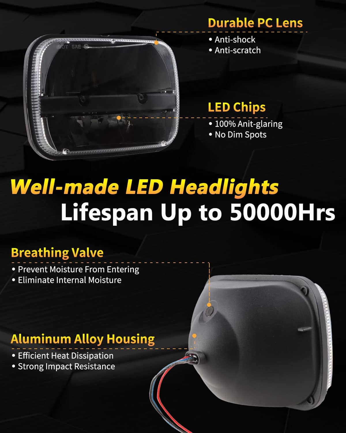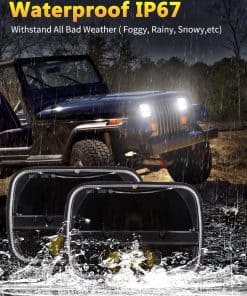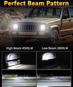 Aplicaciones: Modelos de Jeep con faros stock 5″x7″ (7″x6″) Jeep Wrangler YJ (1987-1995), Jeep Wrangler Cherokee XJ (1984-2001), Jeep Wrangler MJ Comanche (1986-1992).