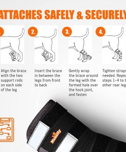 Par de Frenos de Pierna Trasera para Perros NeoAlly Soporte para Articulación de Corvejón Trasero Canino con Correas Reflectantes de Seguridad para Protección de Lesiones Articulares y Esguinces, Curación de Heridas y Pérdida de Estabilidad por Artritis (XL Par). Cuando un perro se lesiona una pierna, es muy probable que la otra pierna también se lesione debido al desequilibrio. Los veterinarios recomiendan encarecidamente usar frenos en ambas piernas. Diseño angulado que coincide perfectamente con la corvejón del perro para evitar que se deslice hacia abajo. Cada freno de pierna trasera viene con 4 Correas de Velcro Reflectantes que aseguran el freno alrededor del tobillo sin moverse ni deslizarse hacia abajo y, lo que es más importante, proporcionan visibilidad y seguridad en la oscuridad. Este freno para perros está hecho de neopreno de primera calidad de 4 mm y forro de nylon, que es suave y duradero, no frota, pellizca ni lastima la piel, y es adecuado para un uso prolongado y repetido. Freno para perros de primera línea recomendado por veterinarios. Soporte para la pierna trasera, corvejón y tobillo del perro, Los perros con problemas de rodilla y ligamento cruzado anterior o posterior también se benefician de este freno. Es muy importante elegir los frenos de tamaño correcto. Consulte la tabla de tallas (imagen a la izquierda o arriba) sobre cómo medir y elegir el tamaño correcto para su perro.