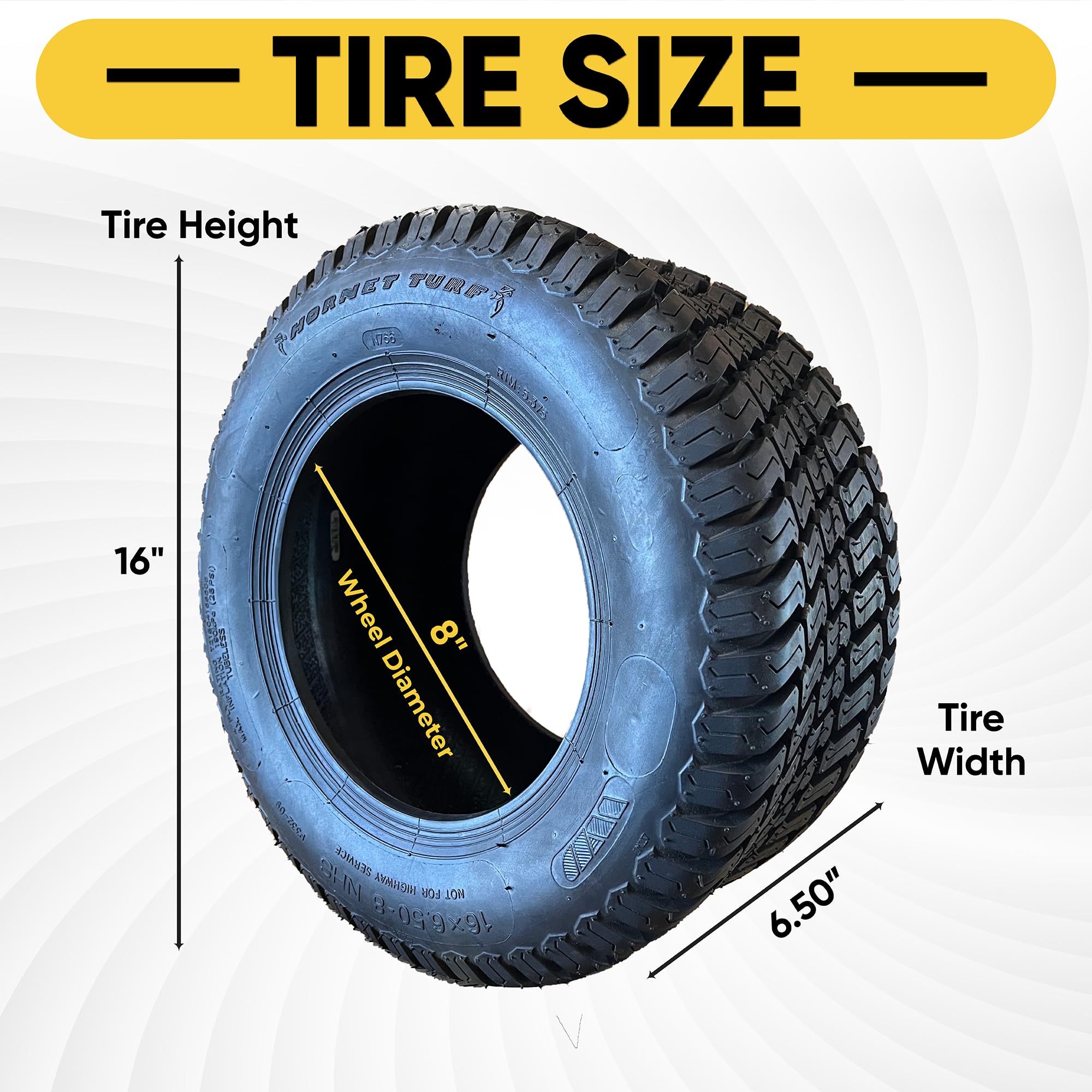 La línea Hornet de Veteran Tire está diseñada con una banda de rodadura de alta tracción y un compuesto de caucho de larga duración. Nuestras llantas nunca se comprimen para facilitar el montaje. Aunque no se comprimen con fines de envío, las llantas para césped y jardín no son llantas radiales y pueden ser difíciles de montar debido a su construcción y bajo número de capas en comparación con las llantas radiales de automóviles.