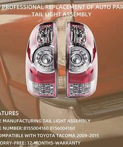 Este par de luces traseras es una excelente opción de reemplazo para tu Toyota Tacoma. Son compatibles con la segunda generación y vienen con una garantía de 12 meses. Instálalas directamente y disfruta de una iluminación de calidad en tu vehículo.