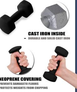 2. Agarre de confort antideslizante: Con un recubrimiento suave de neopreno, estas mancuernas ofrecen un agarre cómodo y ergonómico que absorbe la humedad, haciéndolas ideales para una amplia gama de ejercicios en interiores y exteriores.