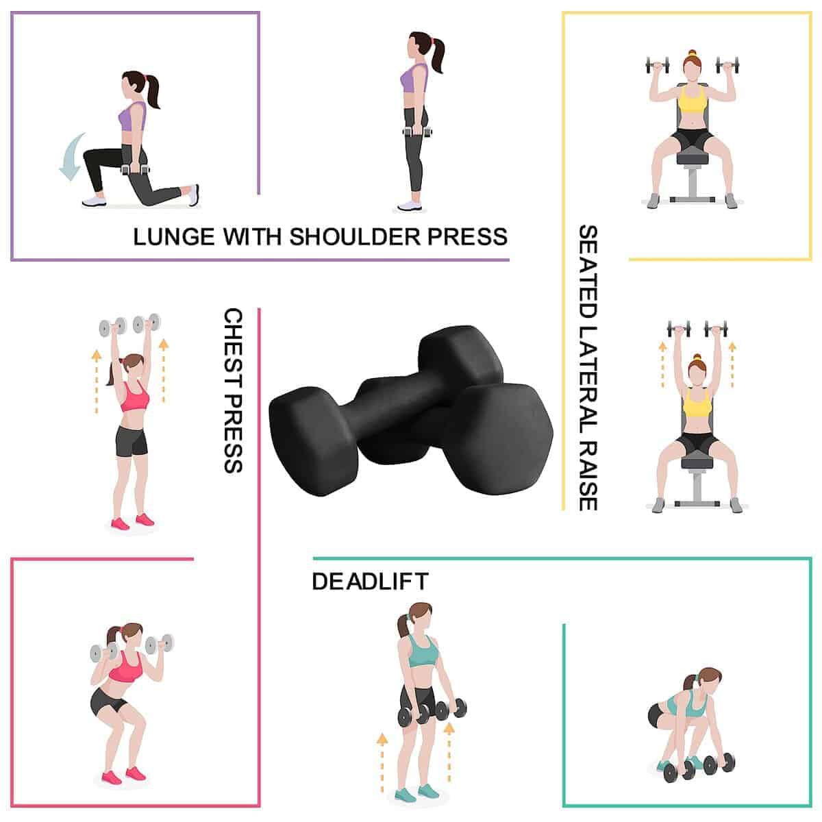 5. INCLUYE: Este set de pesas incluye dos mancuernas de neopreno de 6 lb (12 libras en total), haciéndolas perfectas para ejercicios de yoga y otros entrenamientos sobre la marcha.