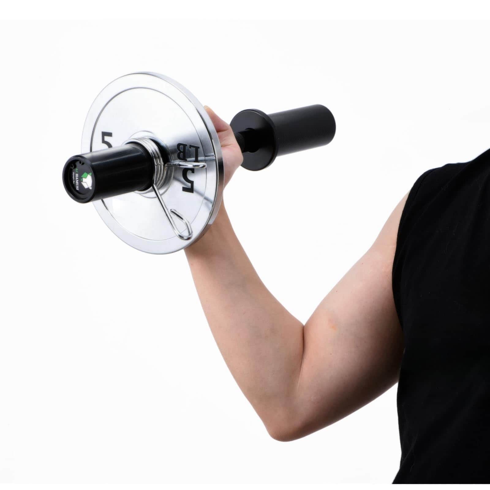 2. BARRA DE MANCUERNA CARGABLE: El kit incluye un par de mangos de mancuerna estándar de 16″ y 4 clip de resorte. No desgastará el cuerpo de la barra debido a múltiples desmontajes y montajes.