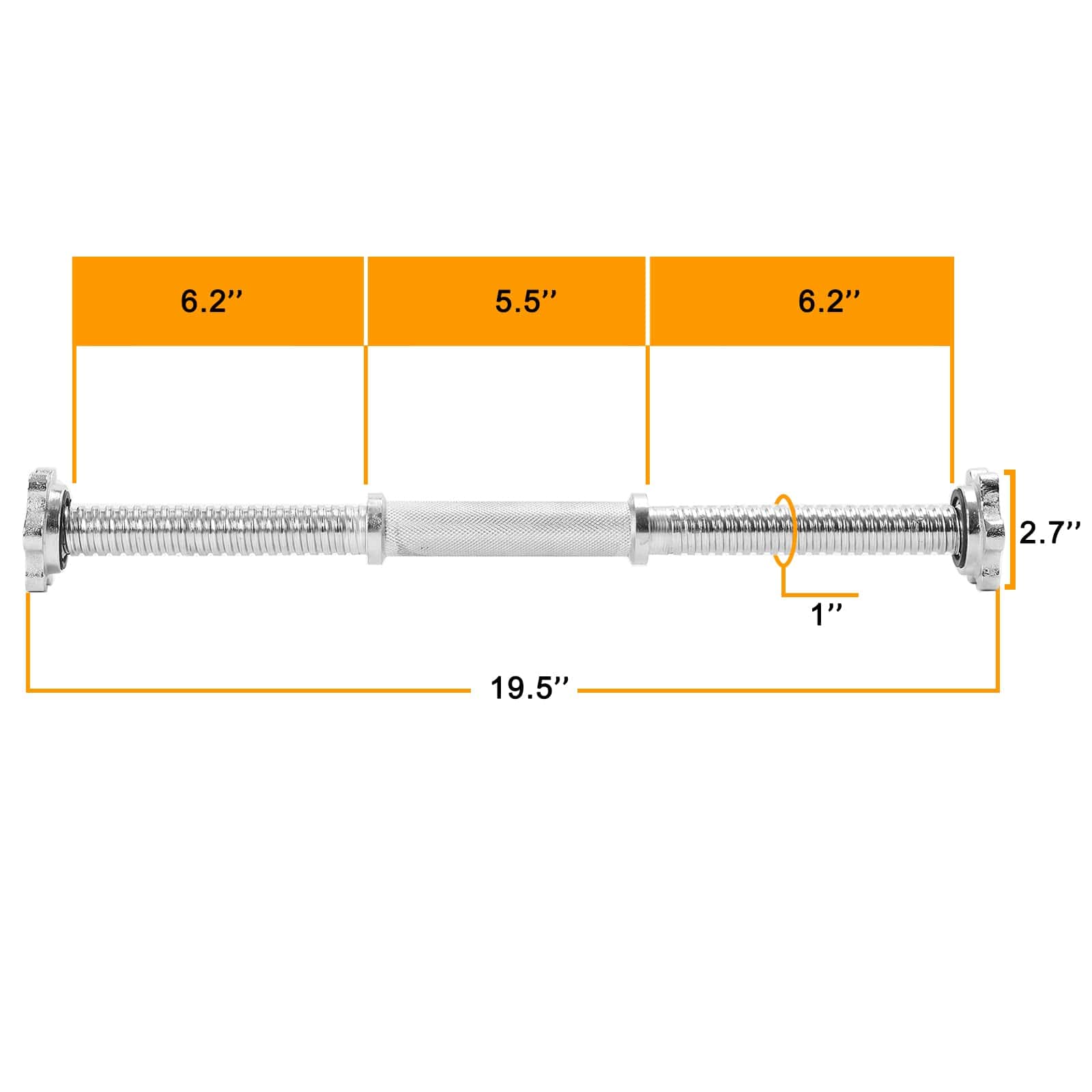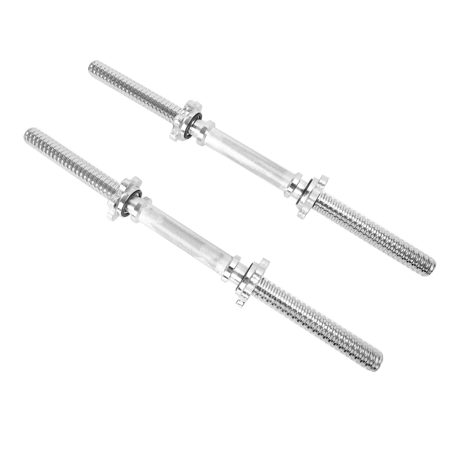 Par de mangos de mancuerna roscados de 1 pulgada cromados, ideales para realizar una variedad de ejercicios con mancuernas. Estas barras de mancuerna ajustables de 19.5″ están hechas de acero resistente y cromado, lo que las hace duraderas y resistentes al óxido. Se adaptan a todas las placas de peso estándar con agujeros de 1″, lo que las hace versátiles y adecuadas para diferentes niveles de entrenamiento. Los mangos cuentan con un diseño antideslizante que proporciona un agarre seguro durante el ejercicio, permitiéndote realizar tus rutinas de forma cómoda y segura. Además, las placas de peso se aseguran con collares de bloqueo de estrella para evitar deslizamientos accidentales. Ya sea en casa, en el gimnasio o en un club deportivo, estos mangos de mancuerna son perfectos para esculpir y tonificar tus brazos.
