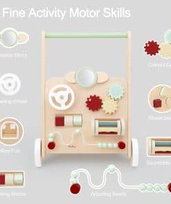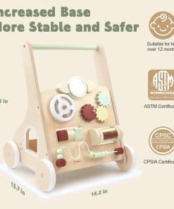 Par de Peras Madera Bebé Andador de Empuje y Arrastre, Juguetes de Aprendizaje para Bebés de Pie a Caminar, Regalo para Niños y Niñas 12m+ El andador de madera para bebés es un juguete clásico diseñado para ayudar a los niños pequeños a aprender a caminar y mejorar sus habilidades de equilibrio y coordinación. Está hecho de madera resistente y de alta calidad que puede soportar el desgaste del juego diario. El andador cuenta con una base amplia para mayor estabilidad y cuatro ruedas que se deslizan suavemente para que los más pequeños puedan moverse con facilidad. El manillar tiene la altura justa para que las manos pequeñas lo agarren cómodamente, y está posicionado de tal manera que permite a los niños empujar el andador fácilmente mientras dan sus primeros pasos. Además de ser una excelente herramienta para el desarrollo físico, mi andador de madera para bebés también fomenta el juego imaginativo. Los niños pueden cargar la bandeja adjunta con sus juguetes favoritos y llevarlos a sus aventuras por la casa.